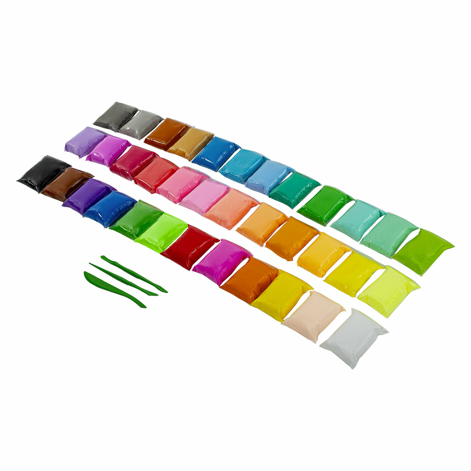 Пластилин супер лёгкий воздушный застывающий 60 шт. (36 цветов + 2 х 12 базовых), 600 г, 3 стека, BRAUBERG KIDS, 106311