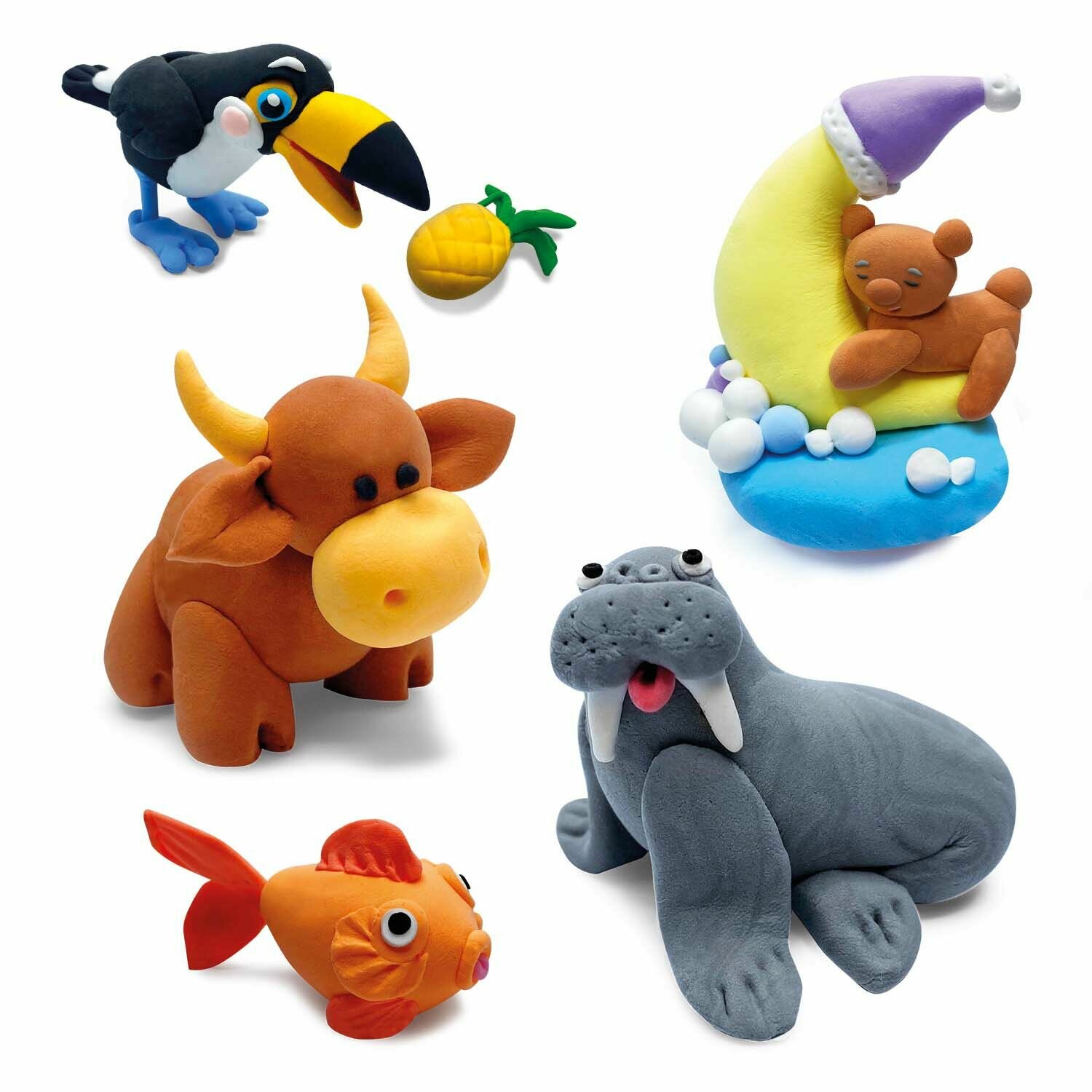 Воздушный пластилин 2 набора для лепки 120 штук, легкий мягкий детский, для малышей с 6 стеками застывающий, 1200 грамм, Brauberg Kids, 881049