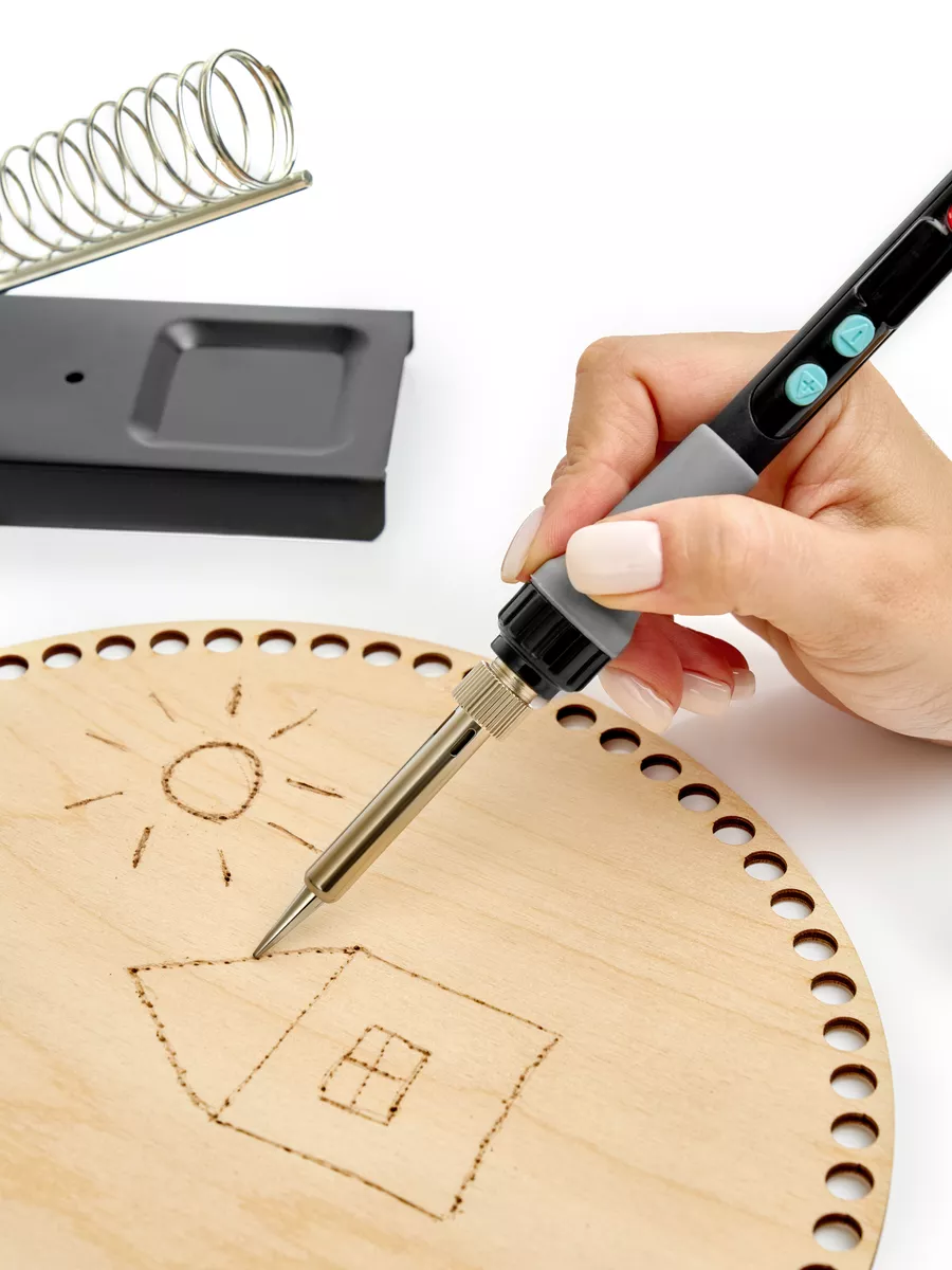 | В комплекте | выжигательный аппарат, подставка, резцы по дереву, сменные насадки, трафаретная доска |