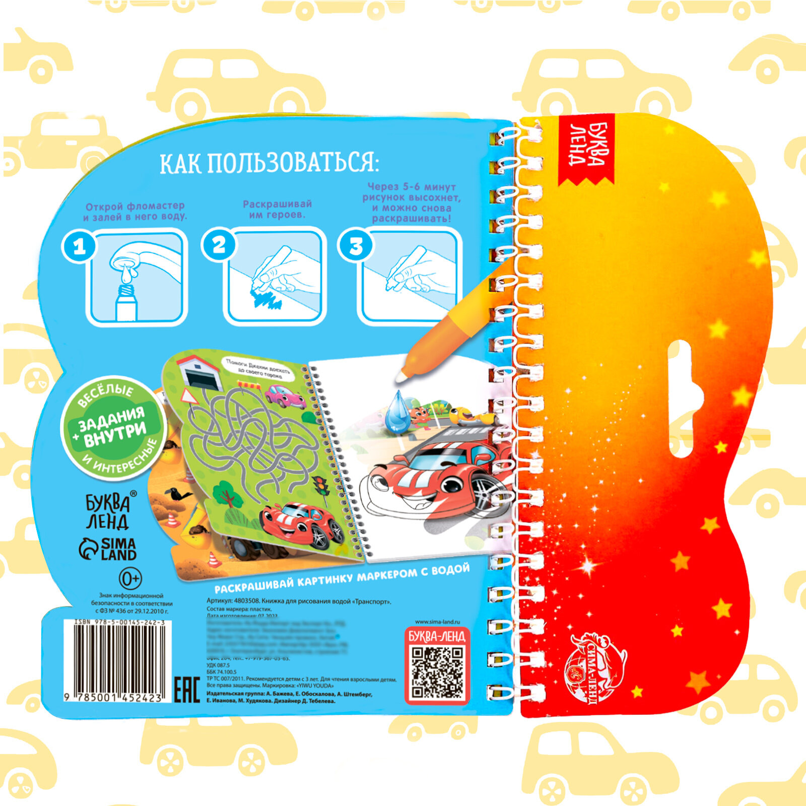 Купить Книжка для рисования водой "Транспорт" многоразовая, с маркером, буква-ленд