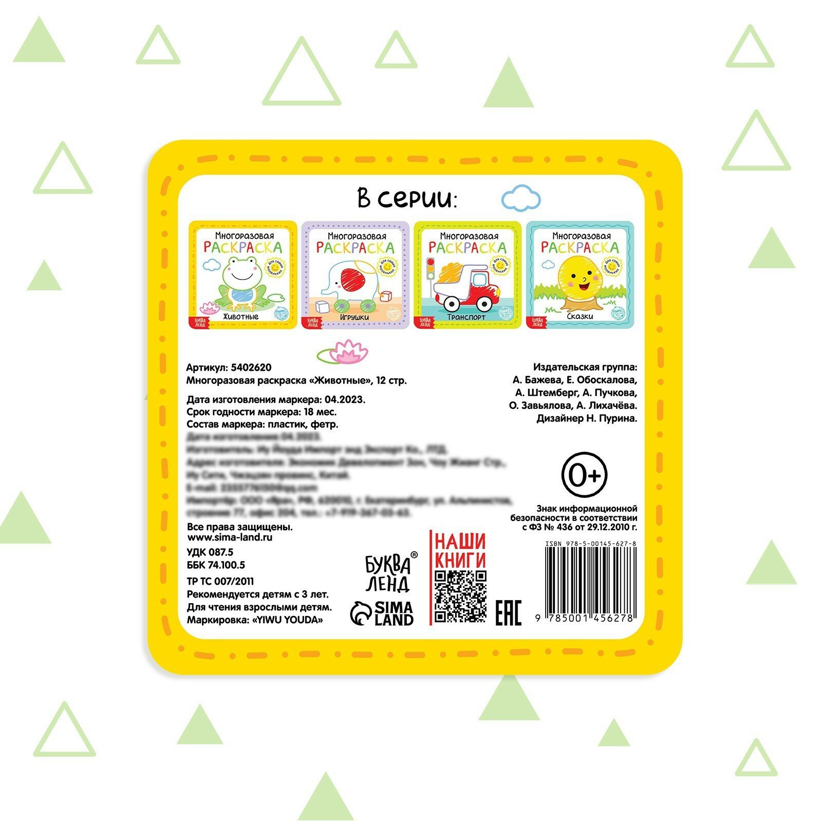 | Комплектация | Многоразовая раскраска - 1 шт., маркеры 5 шт. |