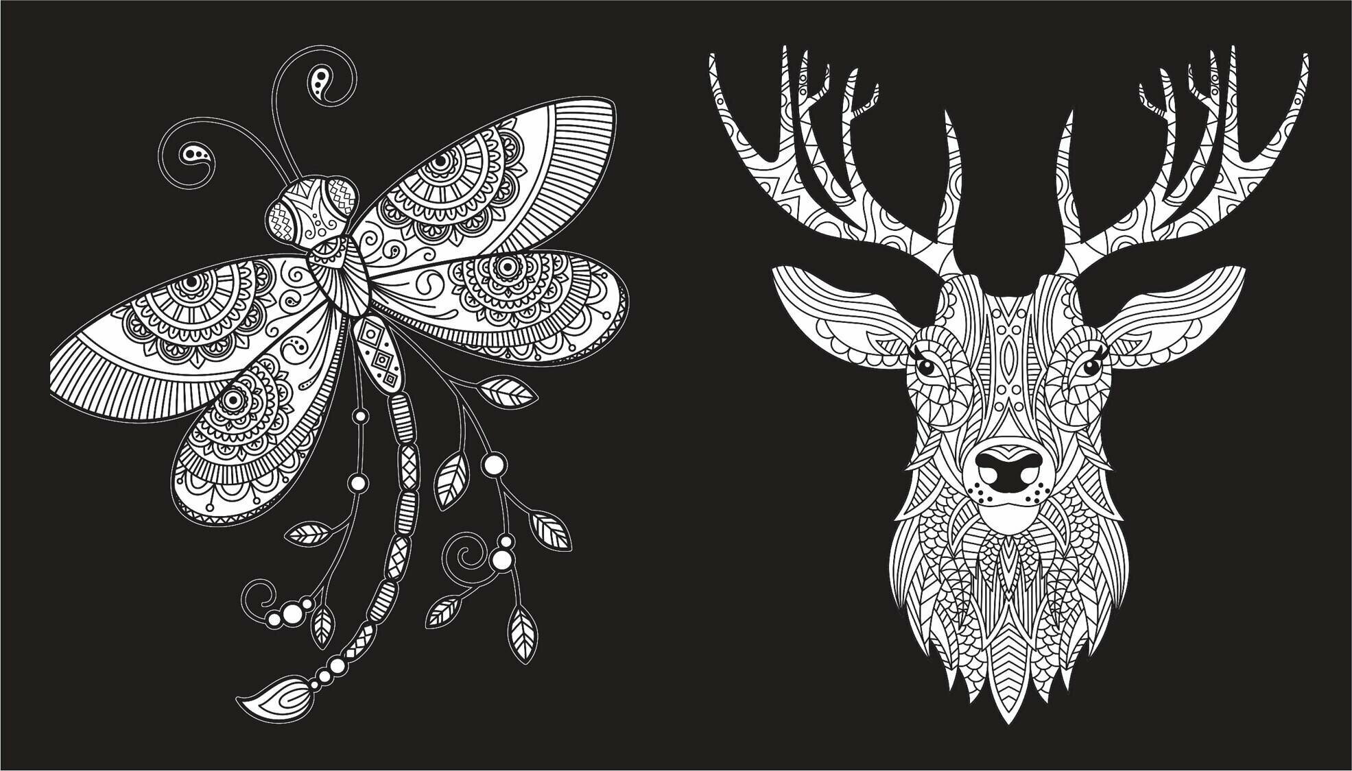 Раскраска на черном фоне Темный лес Красота мира Петрова ЮВ 6+