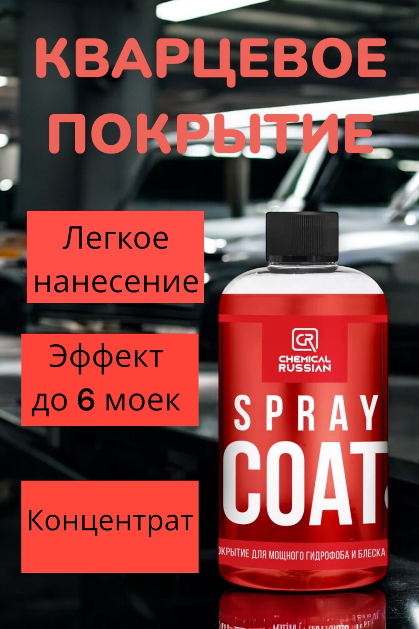 Кварцевое покрытие для кузова - Spray Coat +, 500 мл, Chemical Russian, гидрофобное покрытие для авто (концентрат)