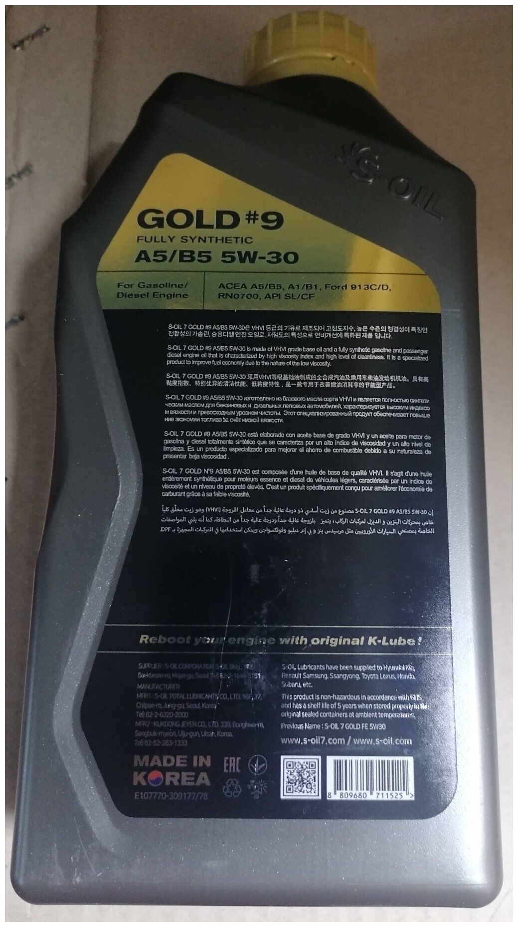 Моторное масло S-OIL 7 GOLD #9 A5/B5 5W30 синтетическое, 1л. интересное:
