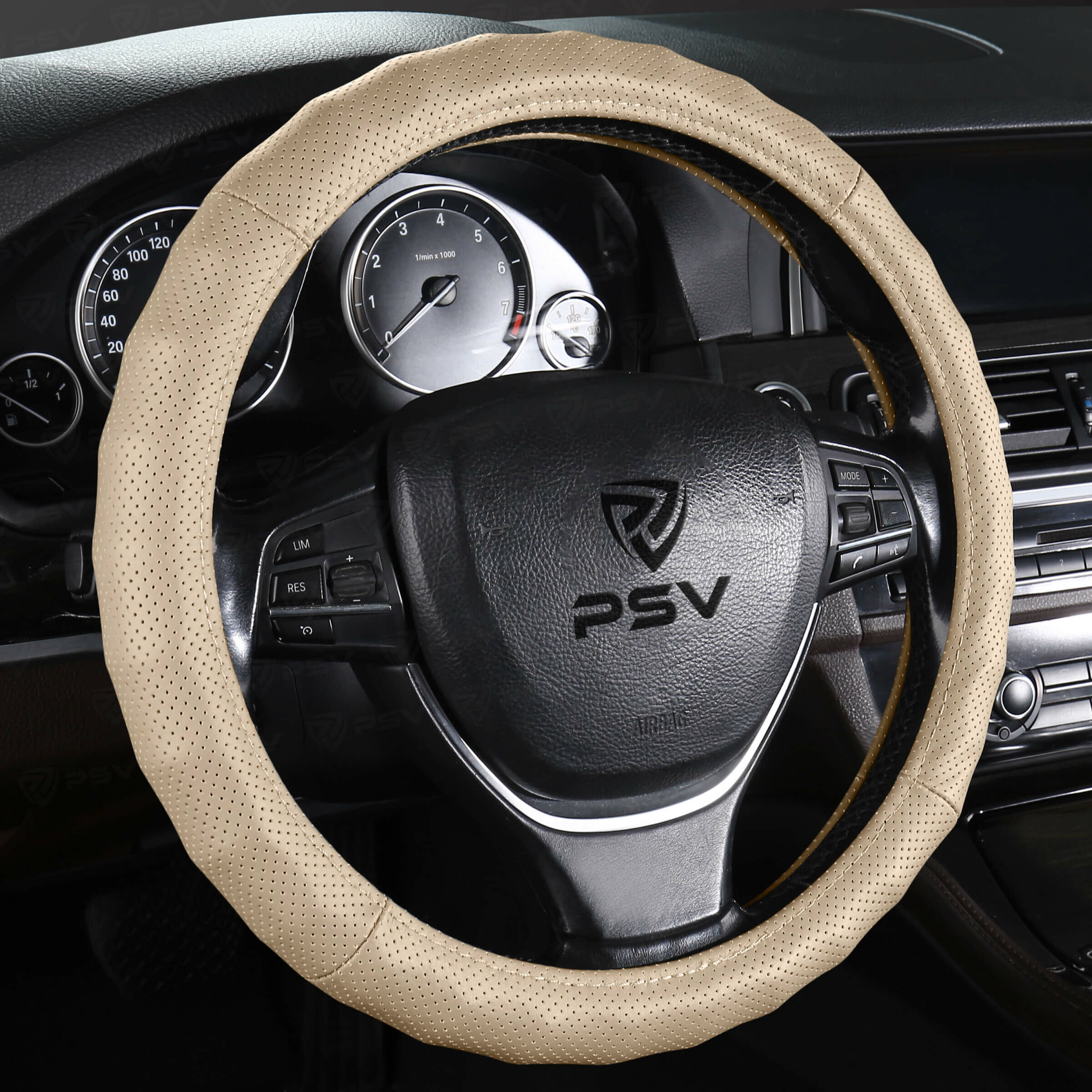 Оплетка чехол на руль кожаная PSV KLASSIKA (Бежевый) M 37-39см, с перфорацией, 136118