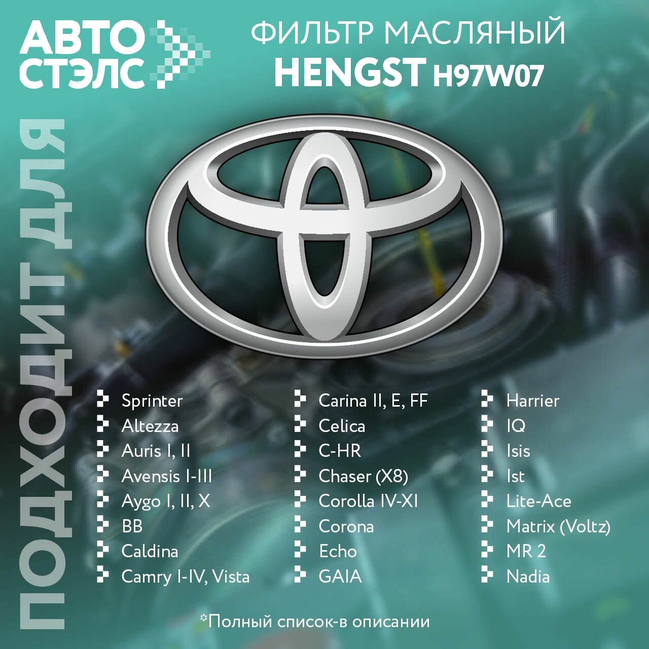 Фильтр масляный HENGST H97W07 (W 68/3, C-110, C-106) Toyota Avensis, Camry, Carina E, Corolla, RAV-