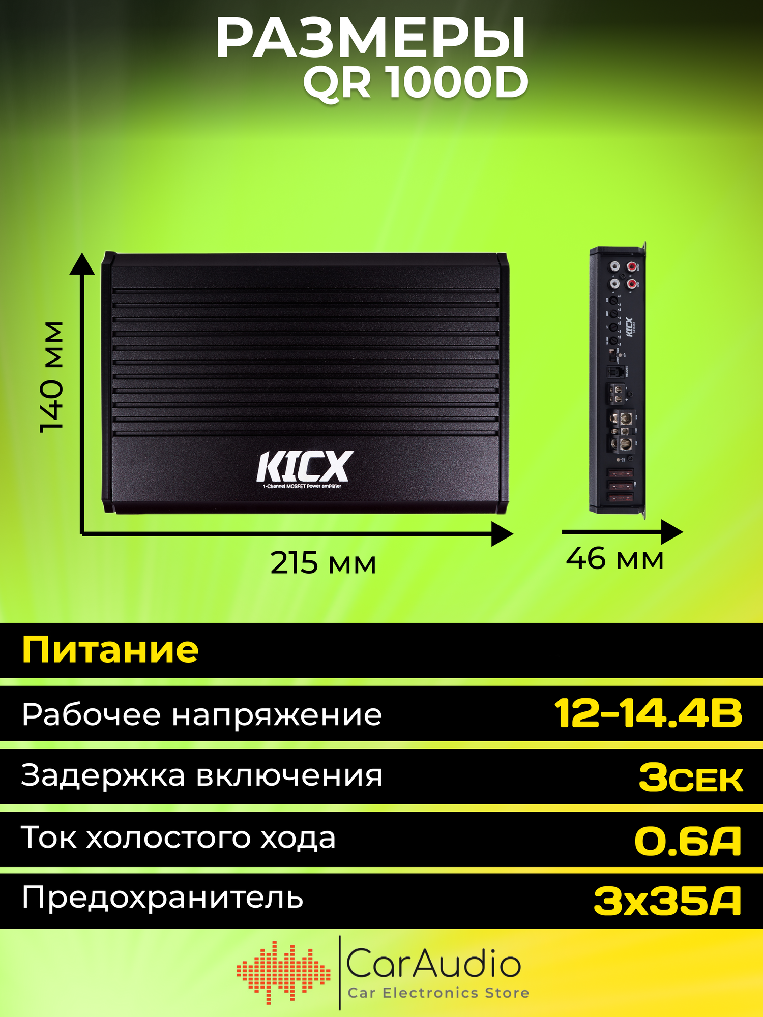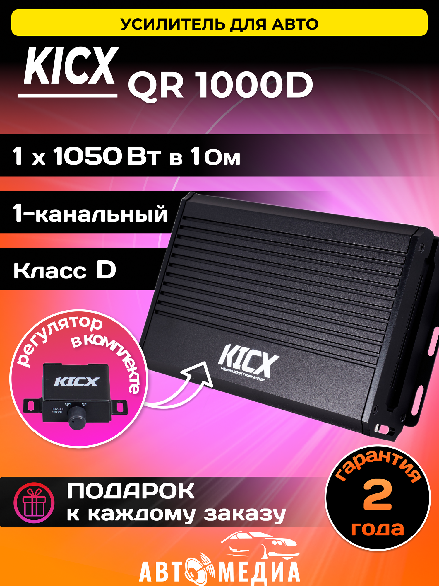 Автомобильный усилитель мощности QR 1000D Kicx 1- канальный усилитель