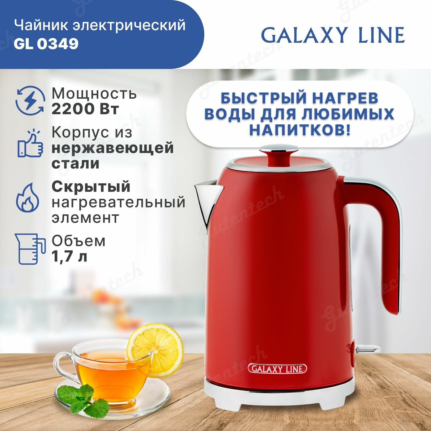 Купить Чайник электрический GALAXY LINE GL0349, феррари 1,7 л, 2200 Вт