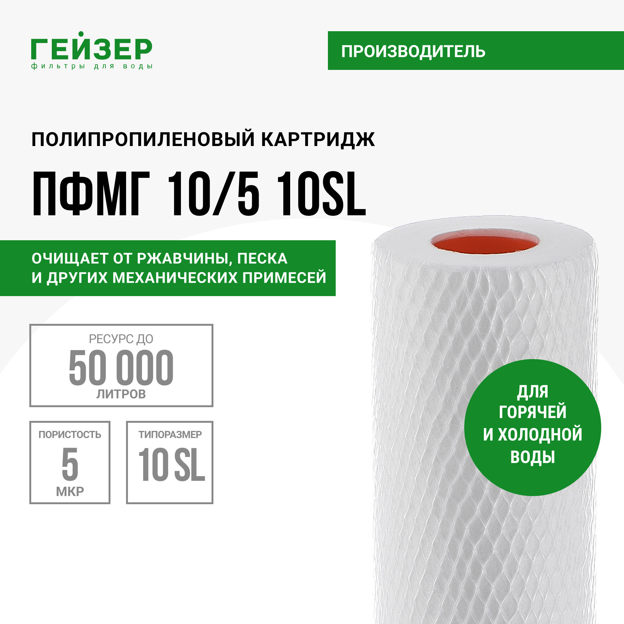 Купить Картридж механический Гейзер пфмг 10/5 - 10SL, для горячей воды, эффективная очистка воды от механических примесей, 28231