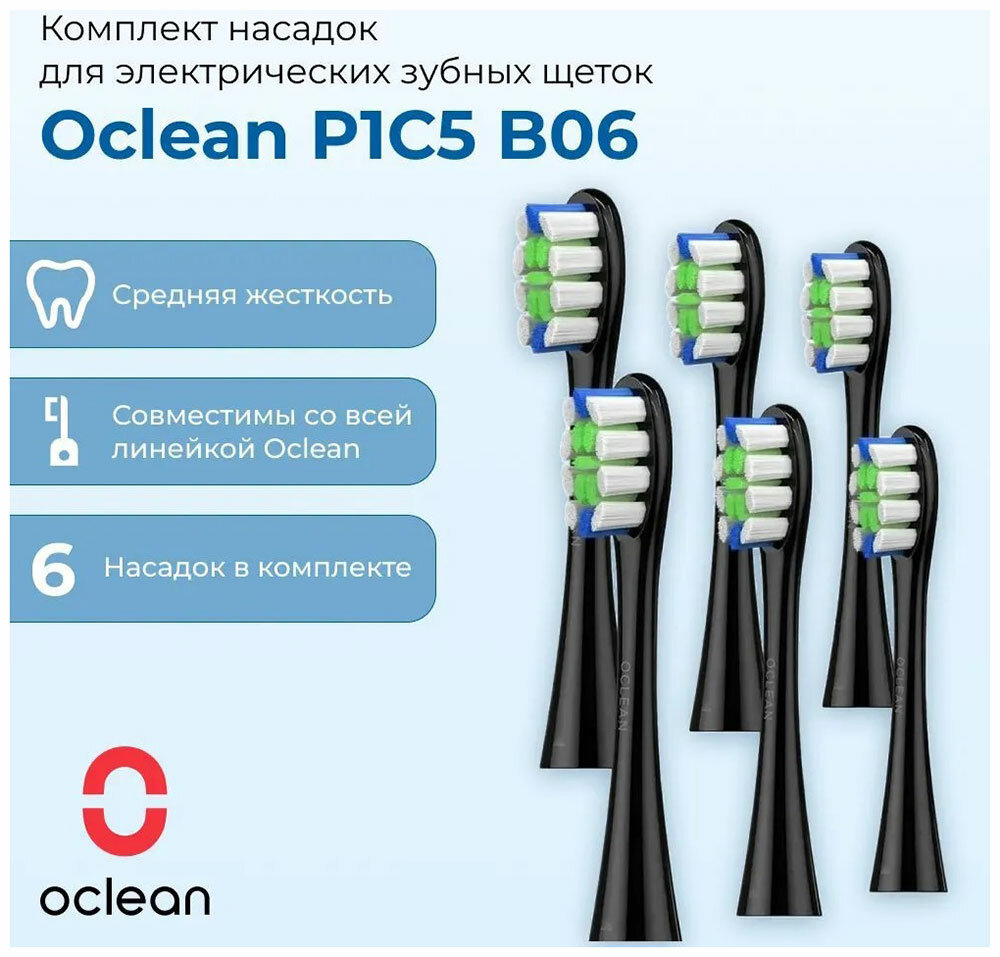 Комплект насадок Oclean P1C5 B06 6шт, черный