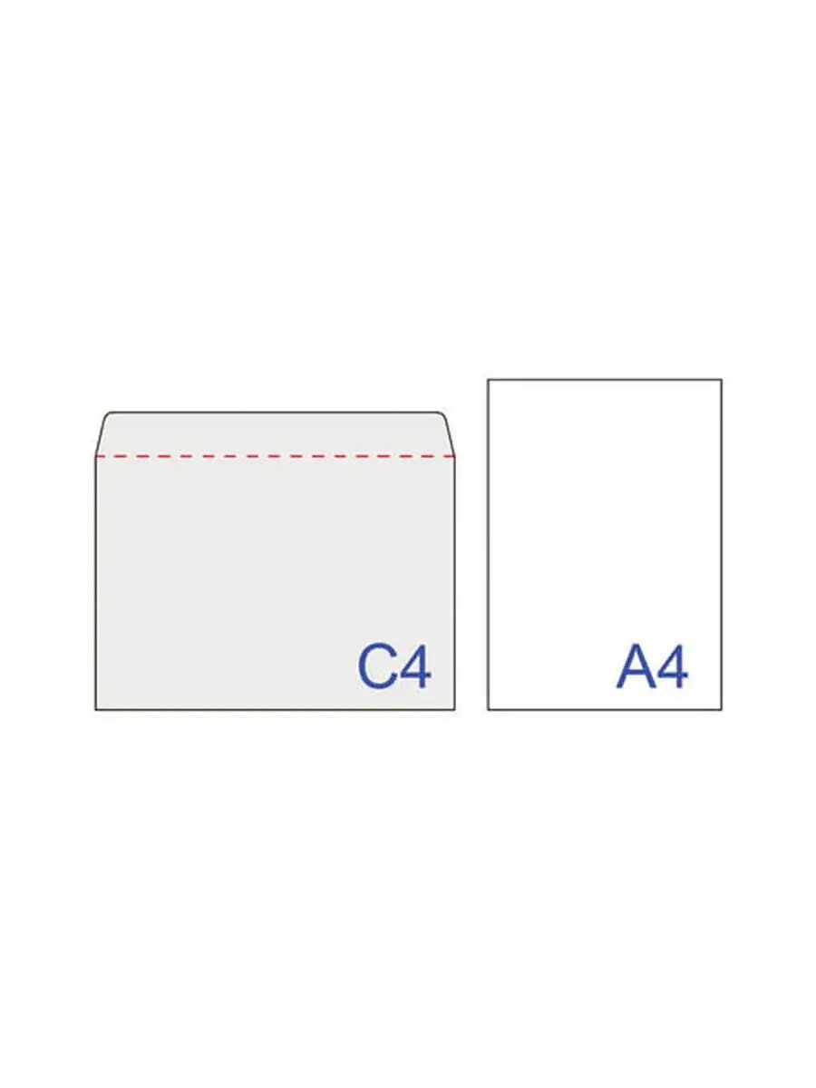 Конверт почтовый бумажный белый "С4" формата 229х324 мм, 100 г/м2, комплект/набор из 50 штук, Brauberg, отрывная лента, внутренняя запечатка, 112181