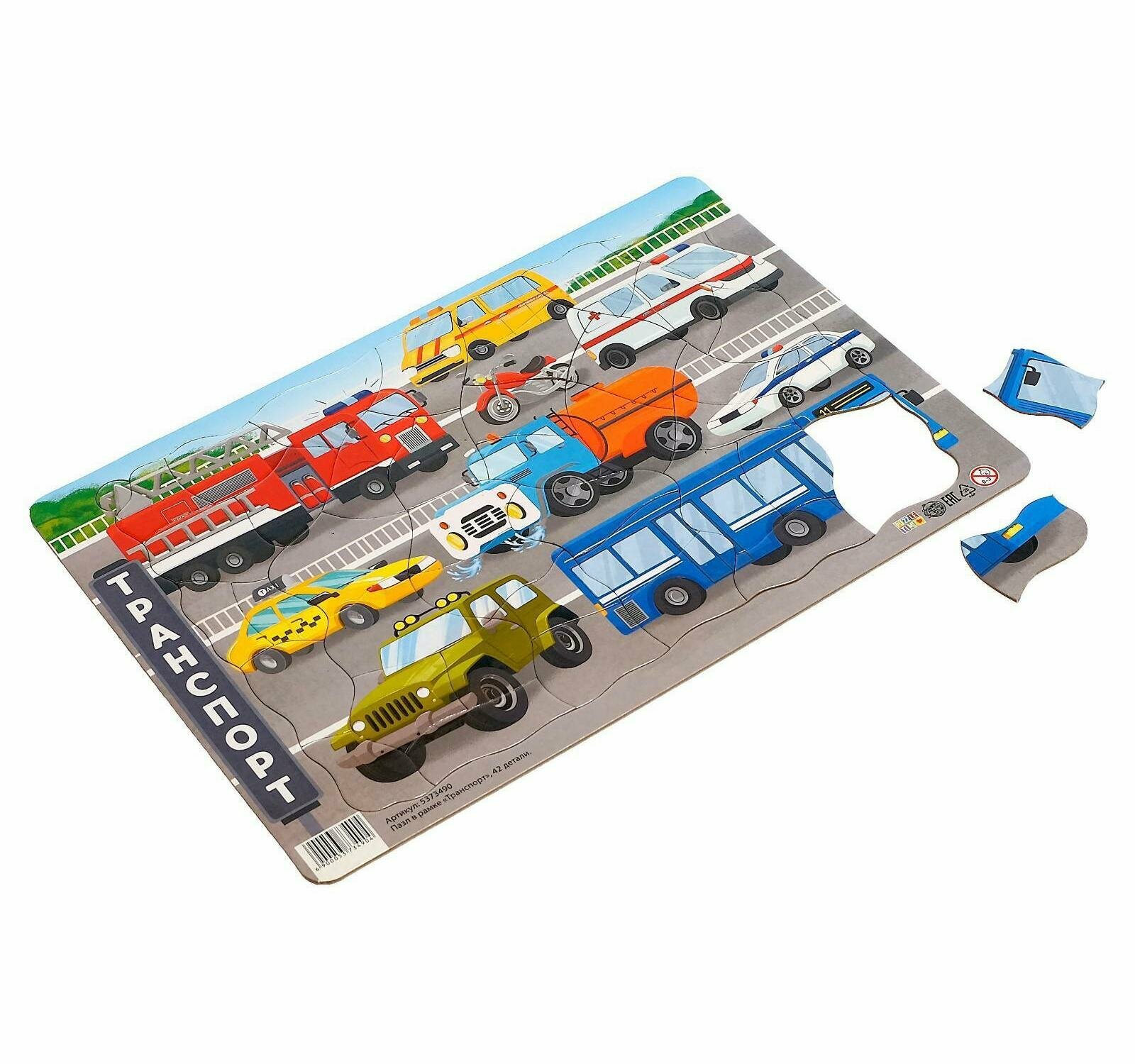 Пазл в рамке "Транспорт", 42 детали, рамка-вкладыш, развивающий, для детей и малышей