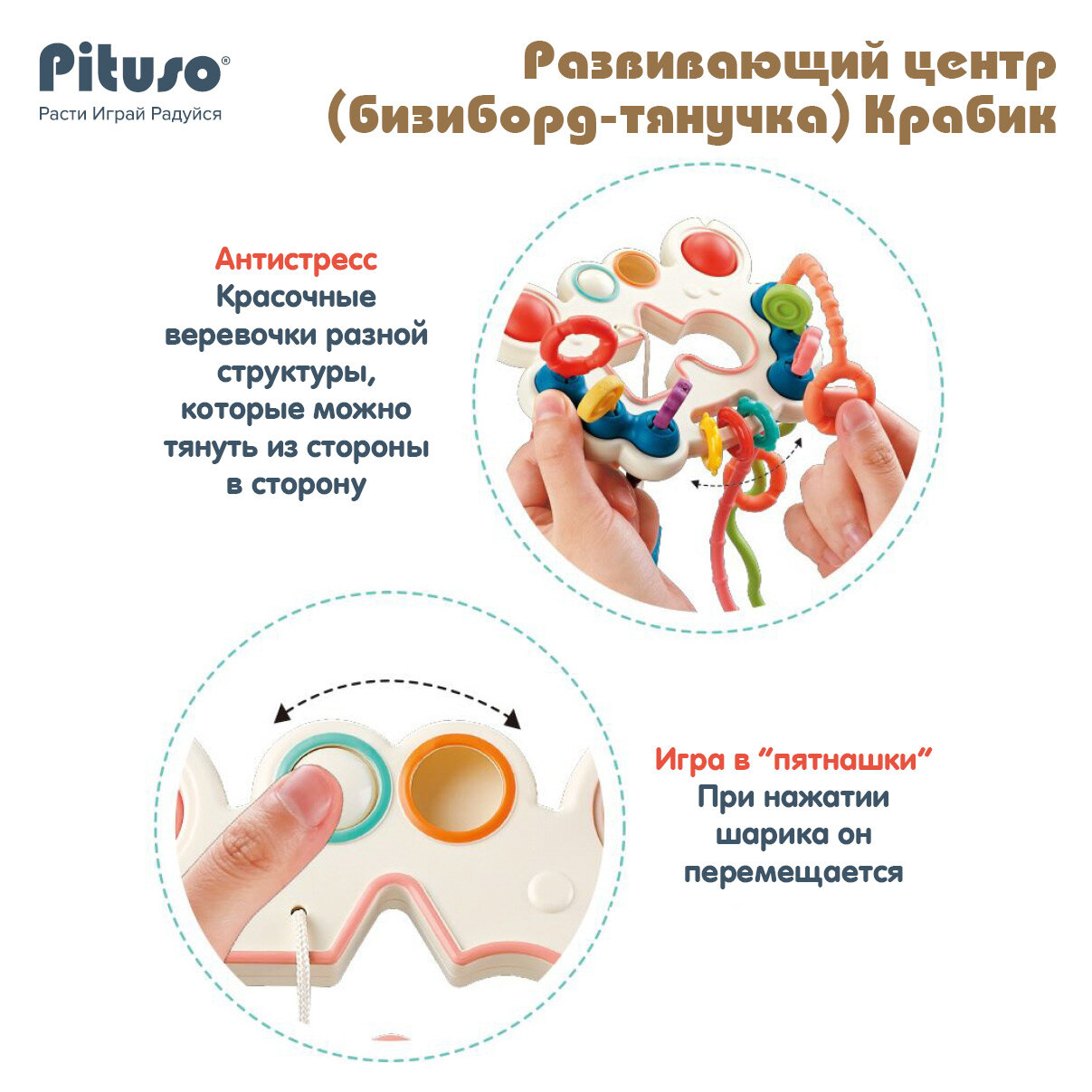 Развивающий центр Pituso бизиборд-тянучка Крабик интересное: