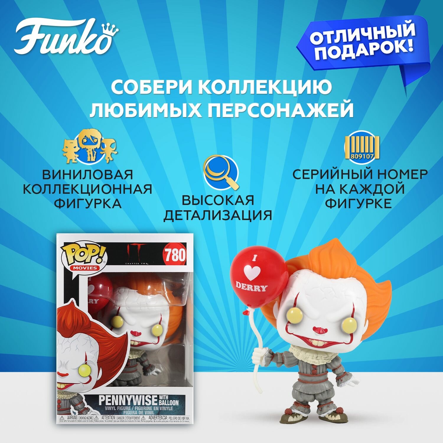 Ниже Вы можете прочитать отзывы на Фигурка Funko POP! Vinyl: IT Chapter 2: Pennywise w/ Balloon, ознакомится с подробными характеристиками, посмотреть интересные обзоры и фотографии на Фигурка Funko POP! Vinyl: IT Chapter 2: Pennywise w/ Balloon.