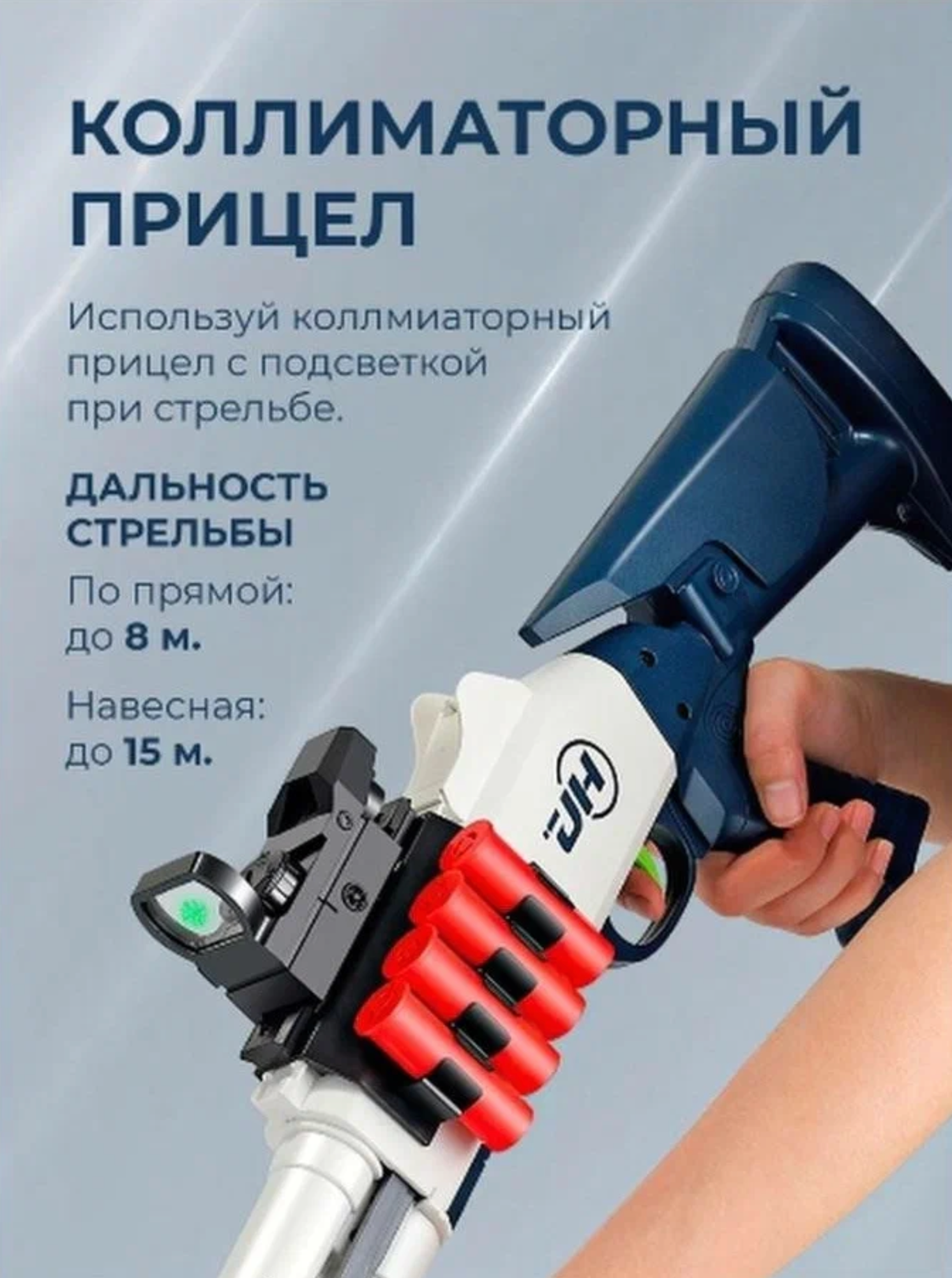 | Комплектация | дробовик, лазерный прицел, гильзы 6 шт., мягкие пули 10шт., мягкие пули с присосками 10 шт., планка для гильз., отвертка, инструкция |