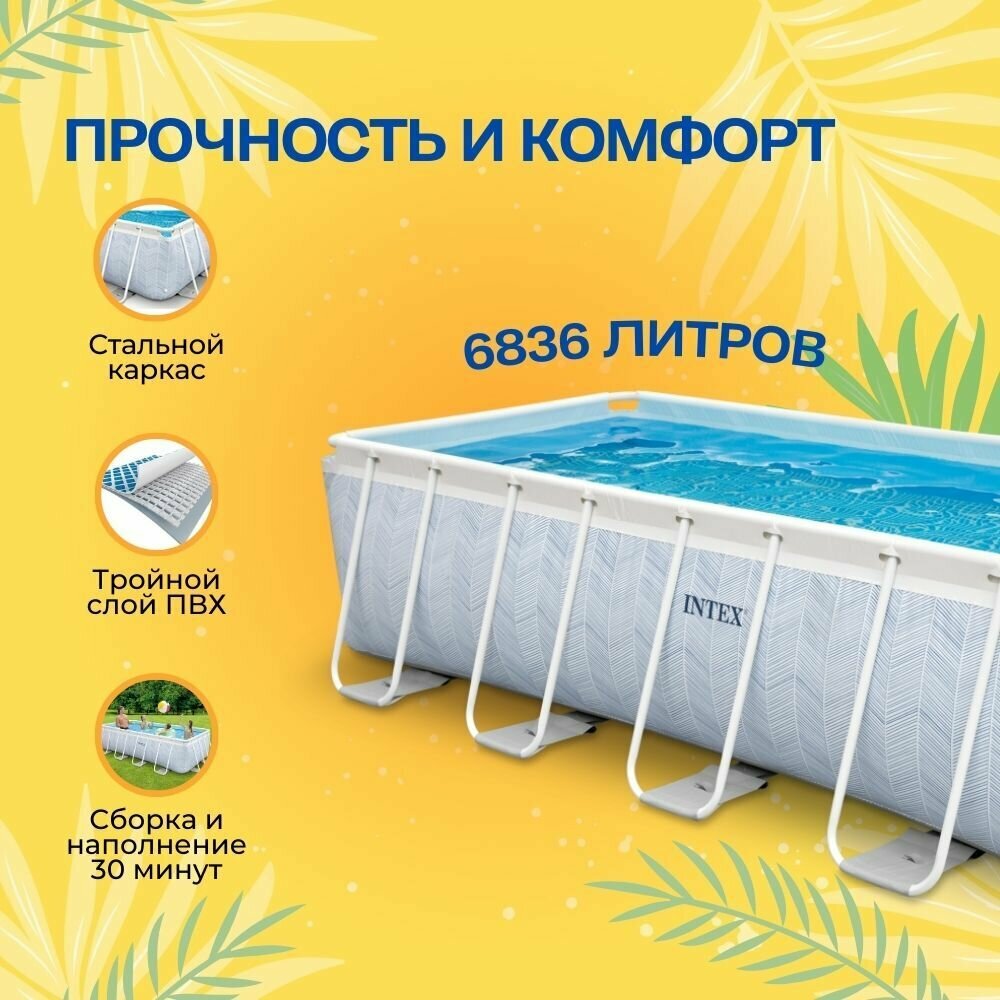 Intex Бассейн каркасный прямоугольный Prism Frame 400х200х100 см + картриджный фильтр-насос, лестница интересное: