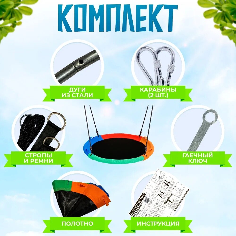 | Комплектация | качели, веревки подвесные, ремни крепления, 4 карабина, инстукция на русском языке, сборочный инструмент |