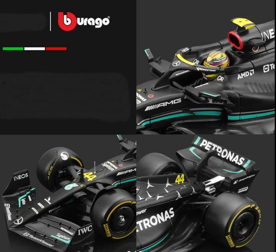 Металлическая коллекционная модель "Bburago" болида "Мерседес" Льюис Хэмилтон. (Lewis Hamilton "Mercedes" W14 №44) Формула-1 сезон 2023. Масштаб 1:24. Длина -24 см