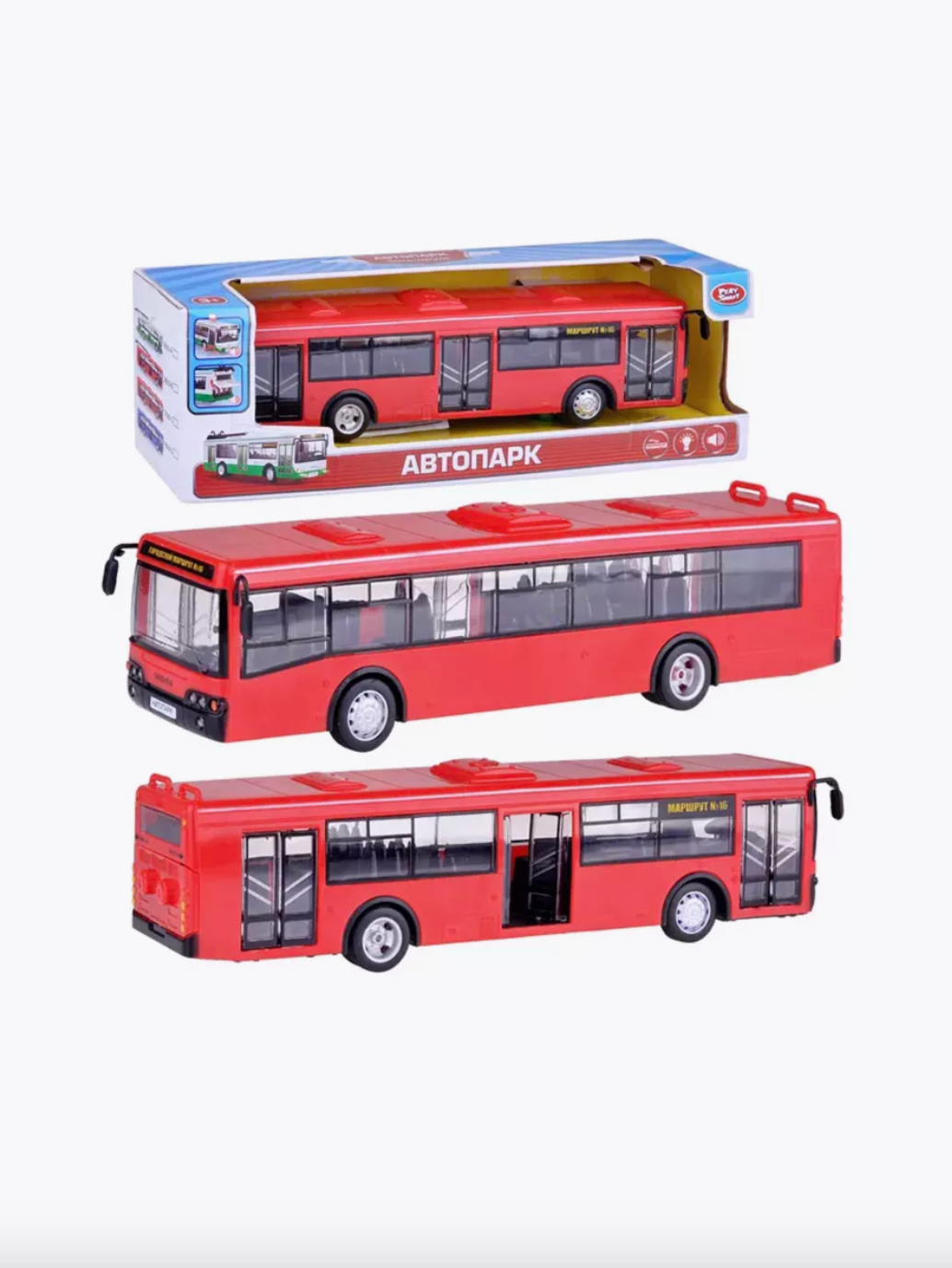 Автобус игрушечный инерционный свет звук масштаб 1:43 Play Smart 9690-C