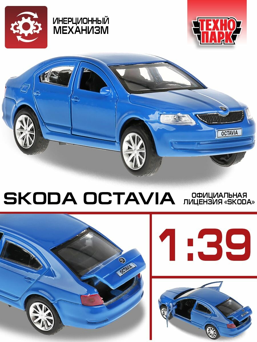 Купить Машинка детская Skoda Octavia 12 см, Технопарк, синяя, открываются двери и багажник, металлическая