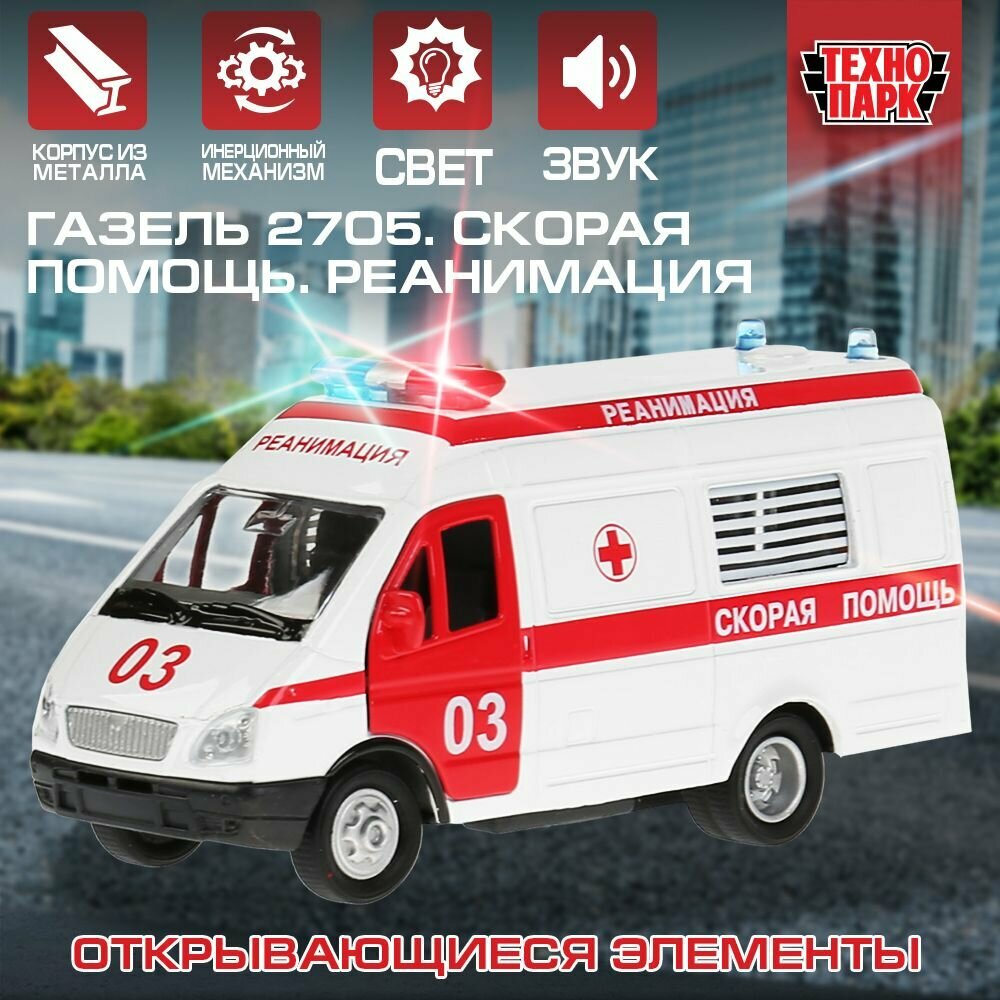 Модель машины Технопарк ГАЗ 2705 Газель Реанимация, инерционная, свет, звук СТ-1276-1