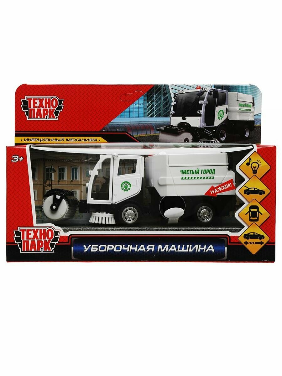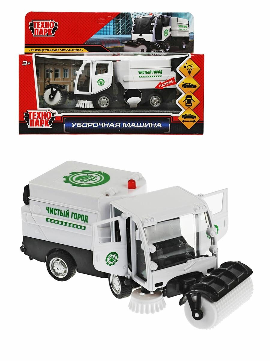Модель Уборочная машина 15,5см свет+звук, белая Технопарк металл. инерц. открыв. двери кабины и кузов интересное: