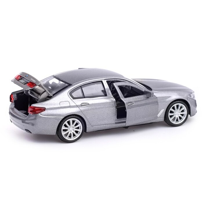Машинка игрушка детская для мальчика BMW 5-ER SEDAN M-Sport Технопарк металлическая модель коллекционная с открывающимися дверьми серебристая 12 см