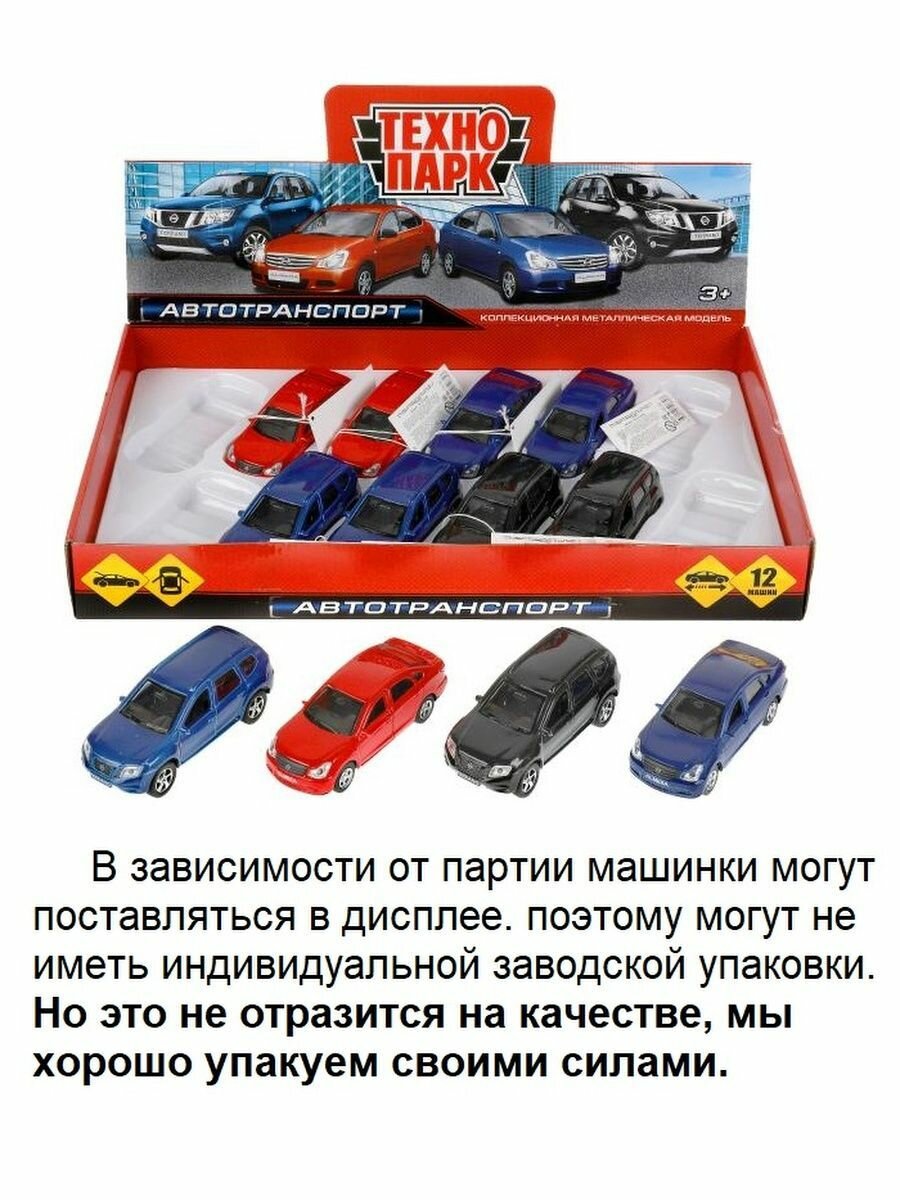| Комплектация | Кроме того, эта игрушка познакомит малыша с марками автомобилей.Игра с инерционной моделью ТМ "Технопарк" развивает:- координацию движений- внимание- ловкость- фантазию и воображениеДлина модели: 12 см. Материал: металл + пластмасса+резина. Рекомендовано детям от 3-х лет. |