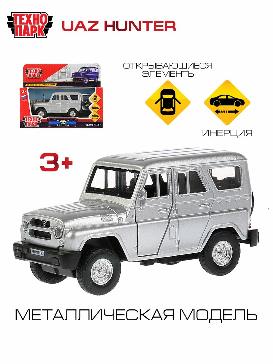 Машинка игрушка детская для мальчика УАЗ Хантер Технопарк детская модель металлическая коллекционная инерционная серебристый 12 см