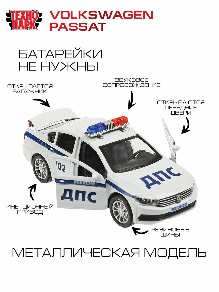 Купить Модель PASSAT-12POL-WH VOLKSWAGEN PASSAT полиция 12 см белый Технопарк в коробке
