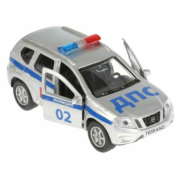 Купить Машинка детская Nissan Terrano Полиция 12 см, Технопарк, серебристая, металлический корпус, открываются двери и багажник