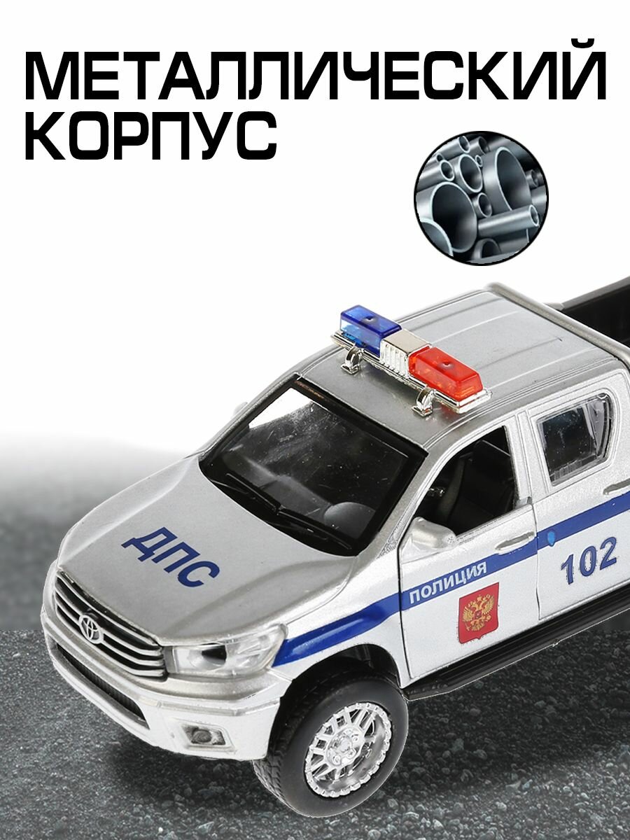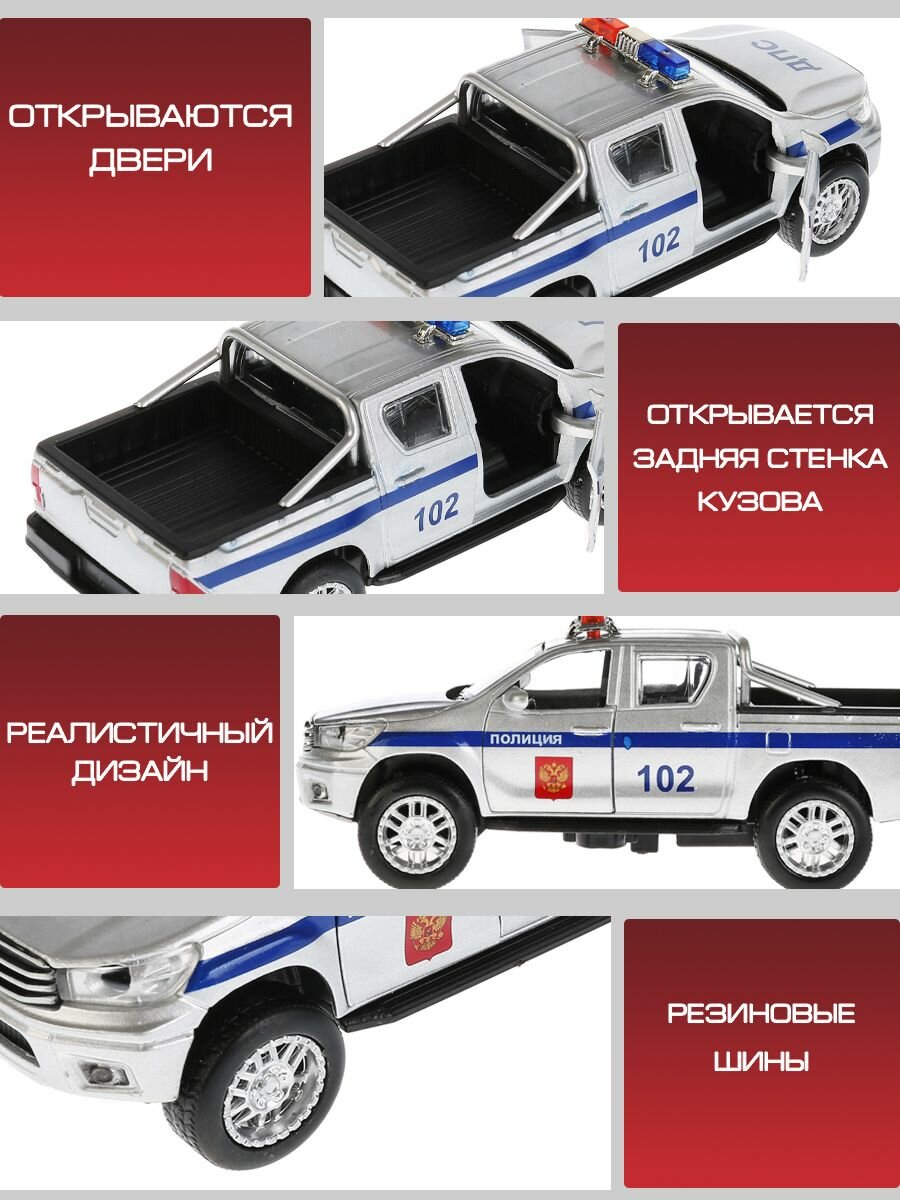 Купить Машина металл "TOYOTA HILUX полиция", 12см, свет+звук, инерционная