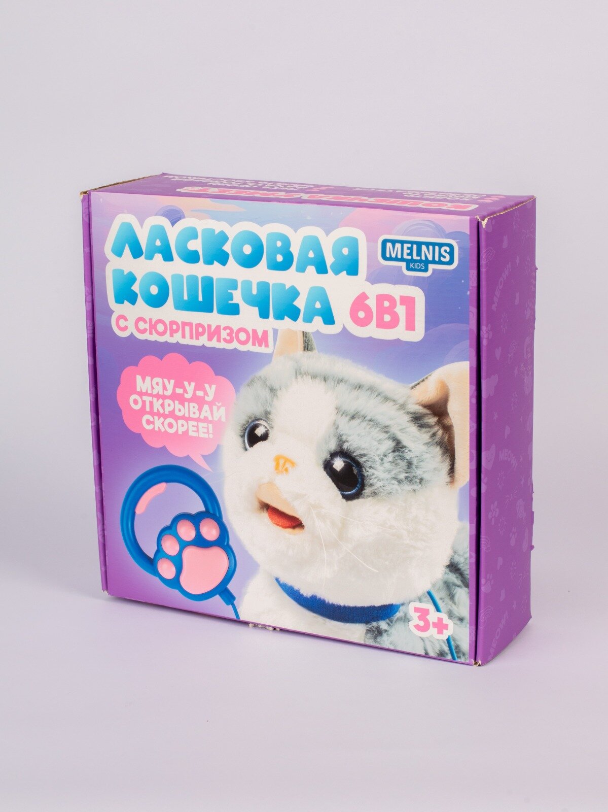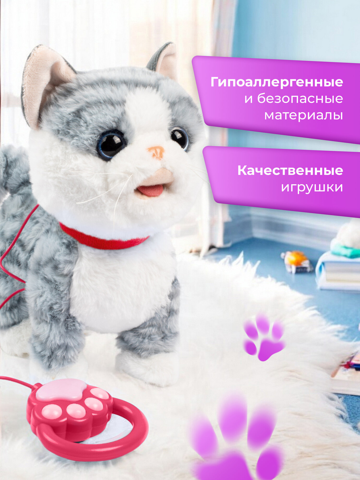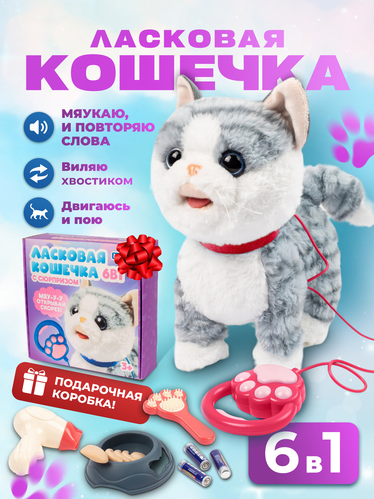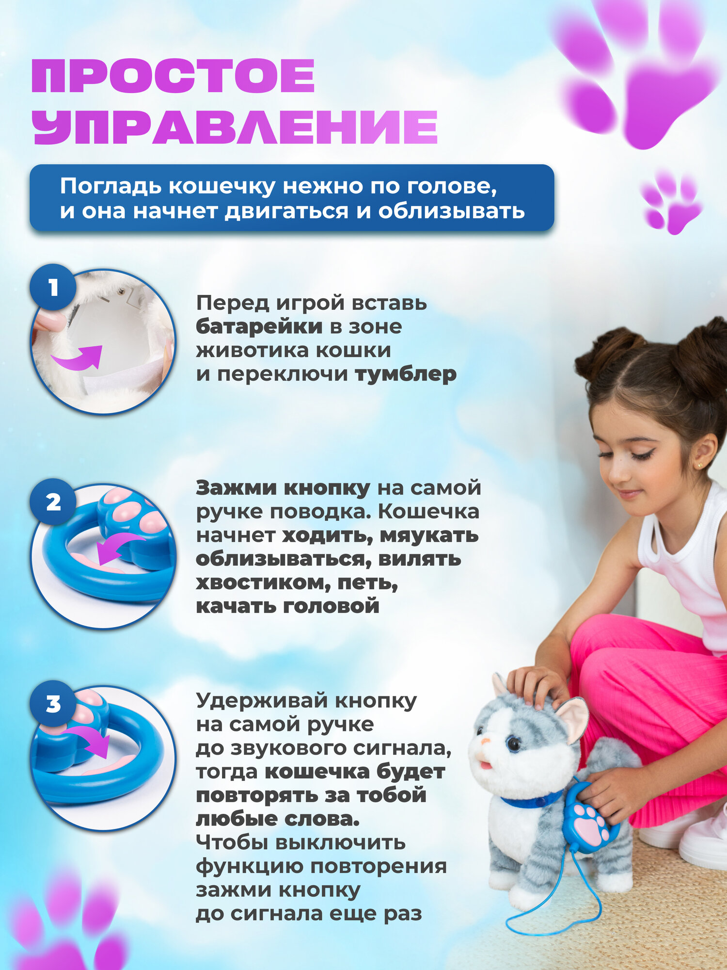 Купить Интерактивная кошка игрушка мягкая на поводке мяукает, виляет хвостиком, двигается и поёт в подарочной упаковке