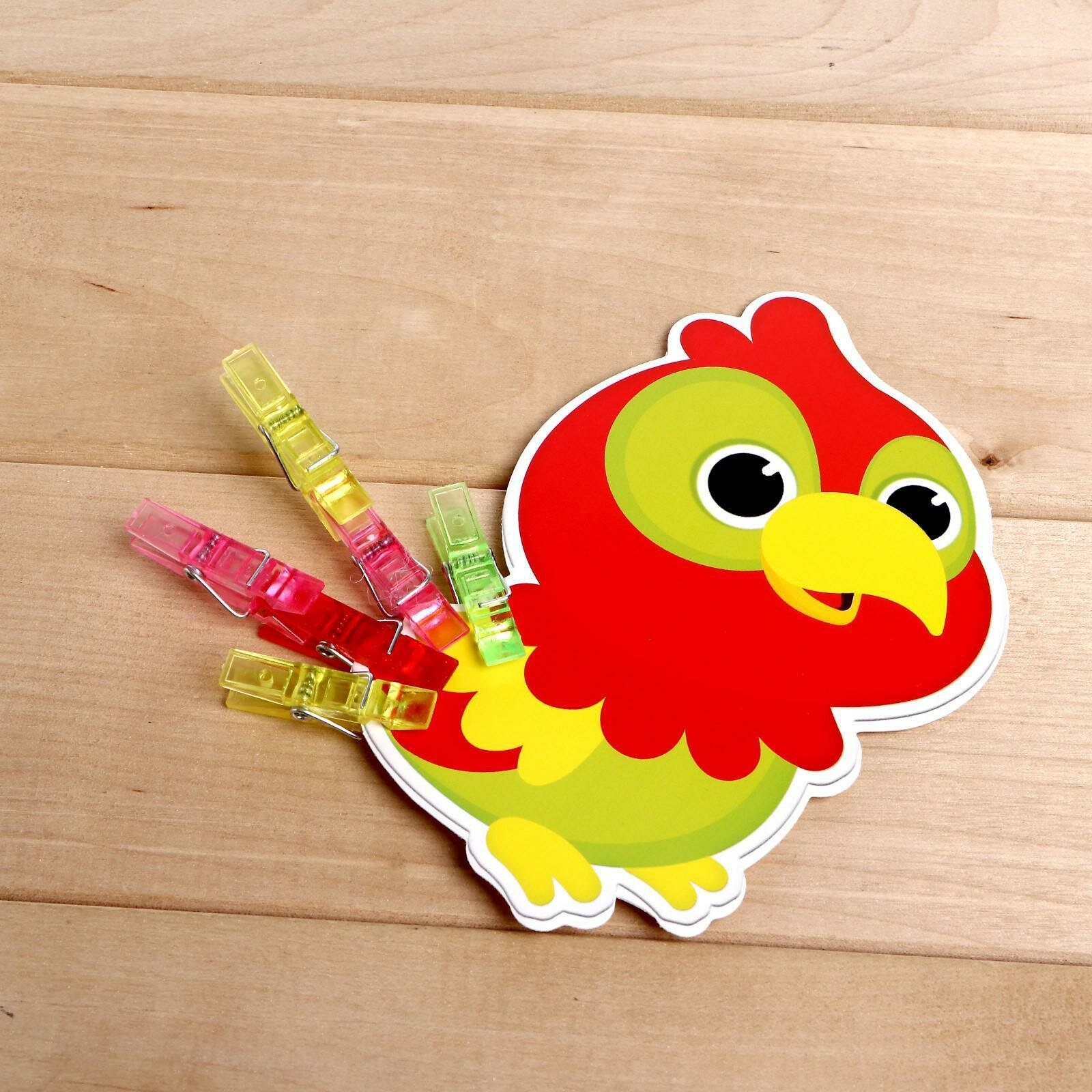 Развивающая IQ-игра с прищепками "Животные", 10 картинок, 30 прищепок