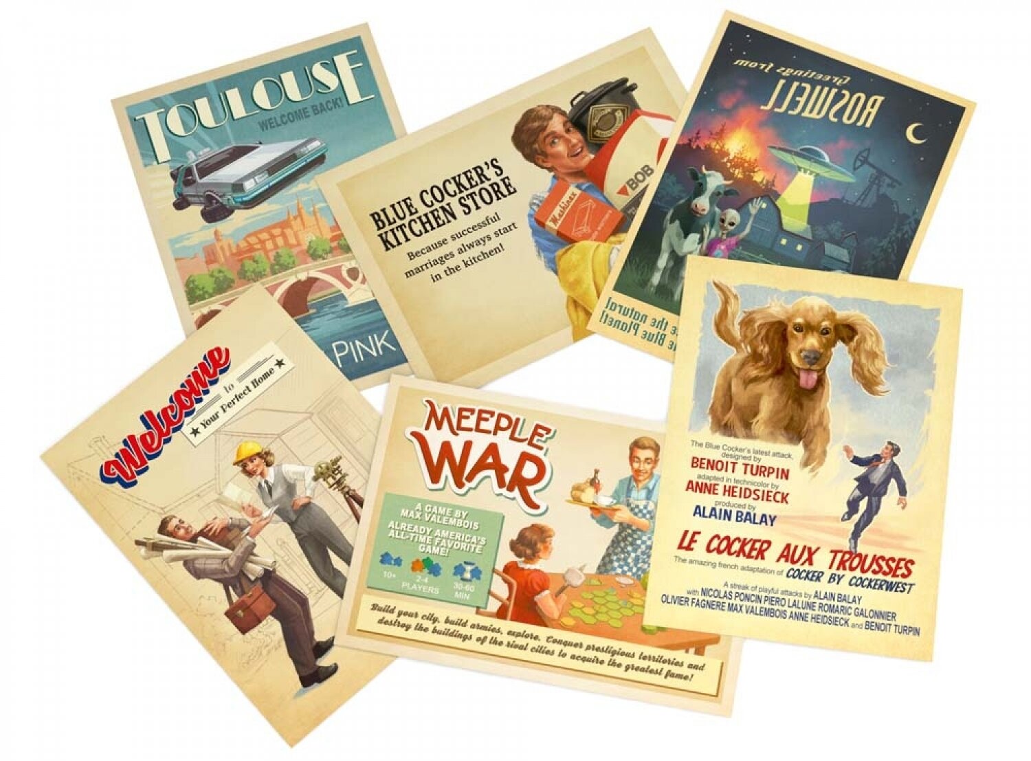 | Комплектация | 29 двусторонних карт планов застройки, 81 двусторонняя карта строительства, 4 памятки, блок из 100 полей для строительства кварталов и подсчёта очков, правила игры |