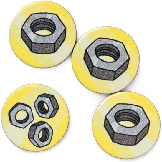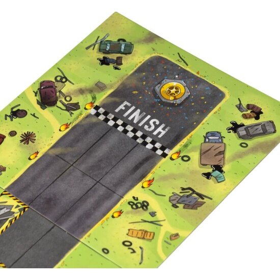 | Комплектация | 12 участков трассы; 54 карты топлива; 30 карт обвесов; 10 карт персонажей; 5 карт-памяток; 30 жетонов гаек; 10 жетонов персонажей; 5 подставок для персонажей; Правила |