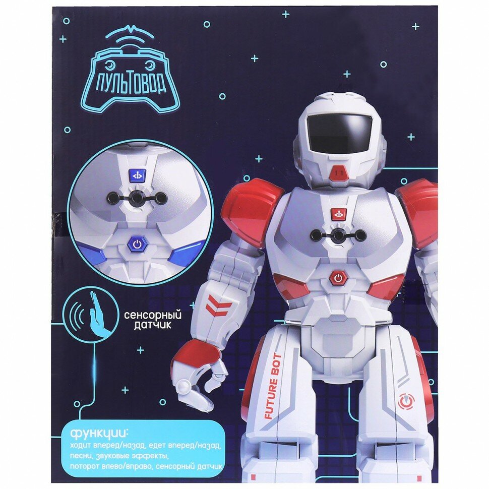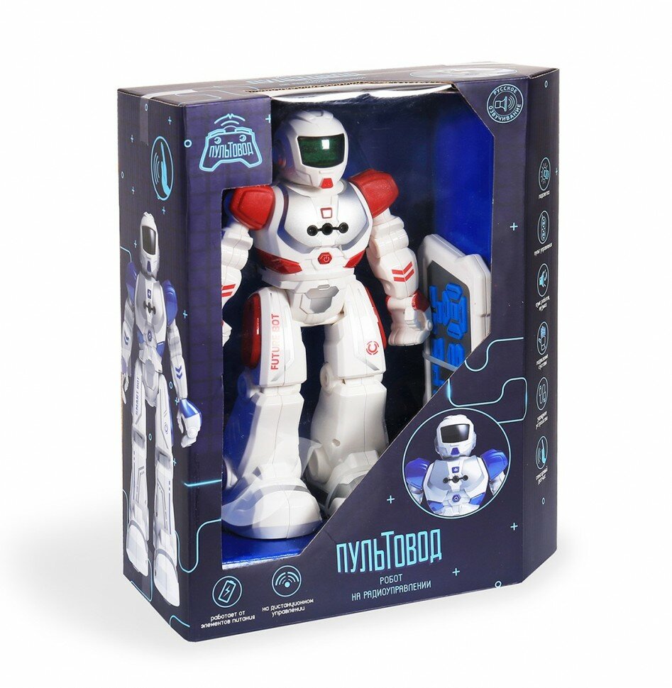 Робот на радиоуправлении JUNFA Пультовод свет, звук, движение, с русским озвучанием, бело-синий в коробке, 26х13,5х32 см. ZY818334/бело-синий