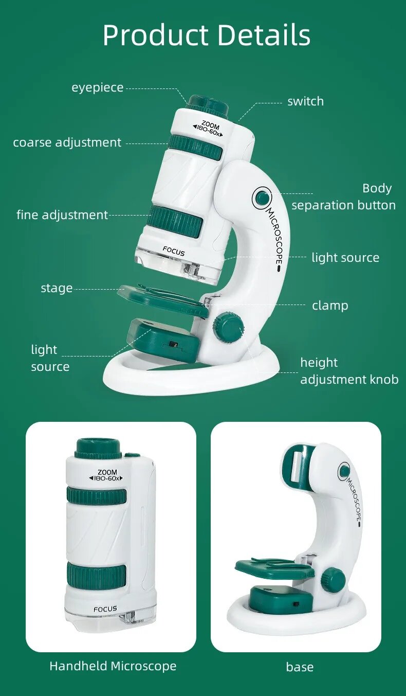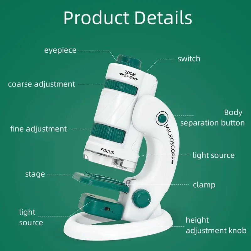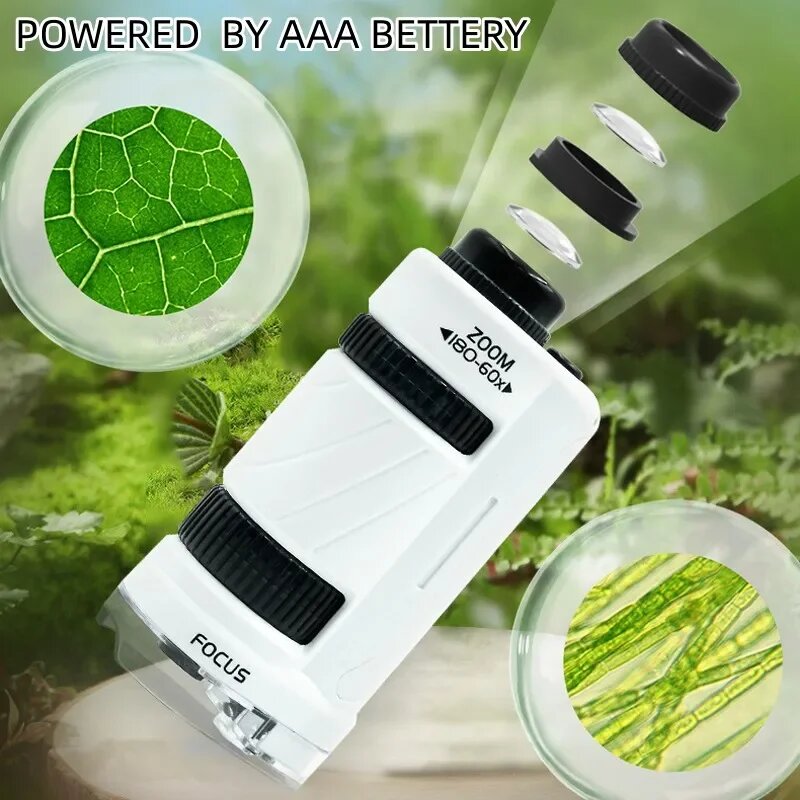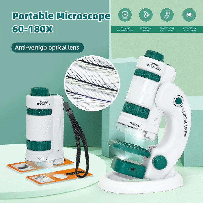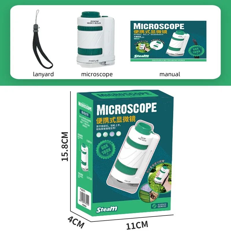 Детский научный микроскоп, игрушечный набор 60-180x, обучающий Карманный ручной мини-микроскоп со светодиодсветильник кой, уличная детская игрушка