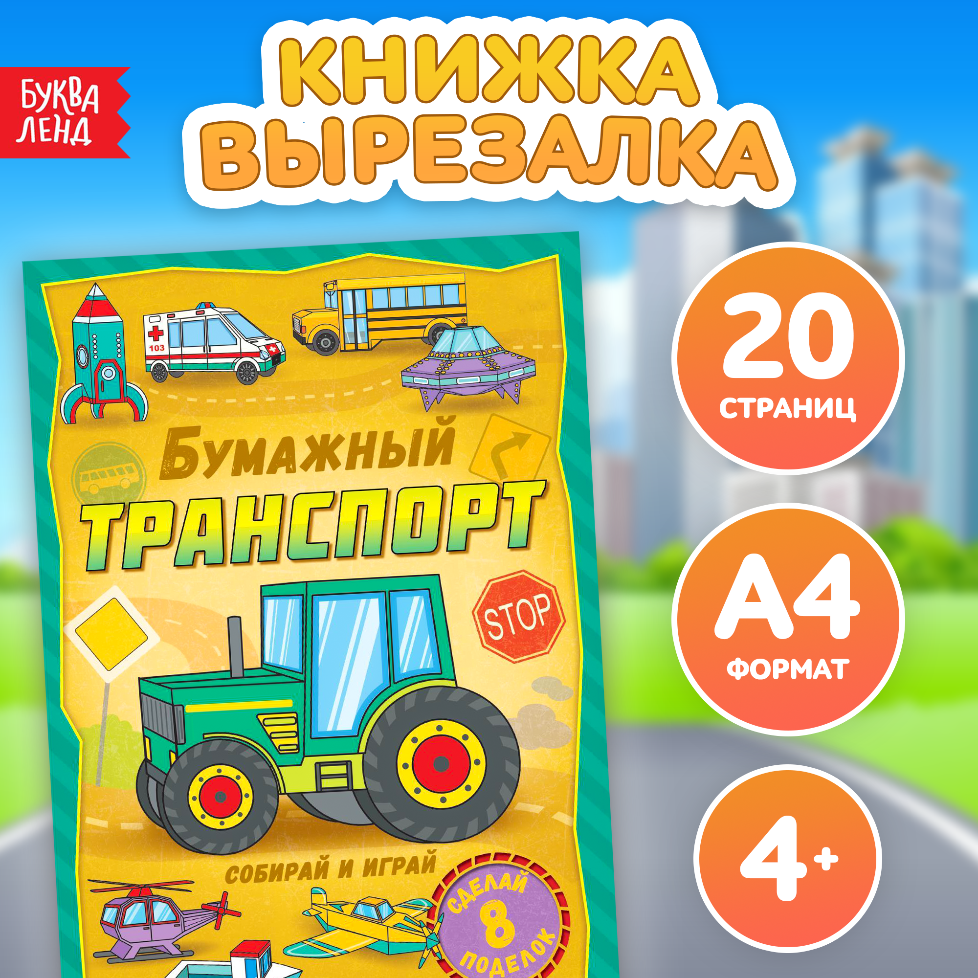 Книга-вырезалка "Бумажный транспорт", 20 стр., буква-ленд интересное: