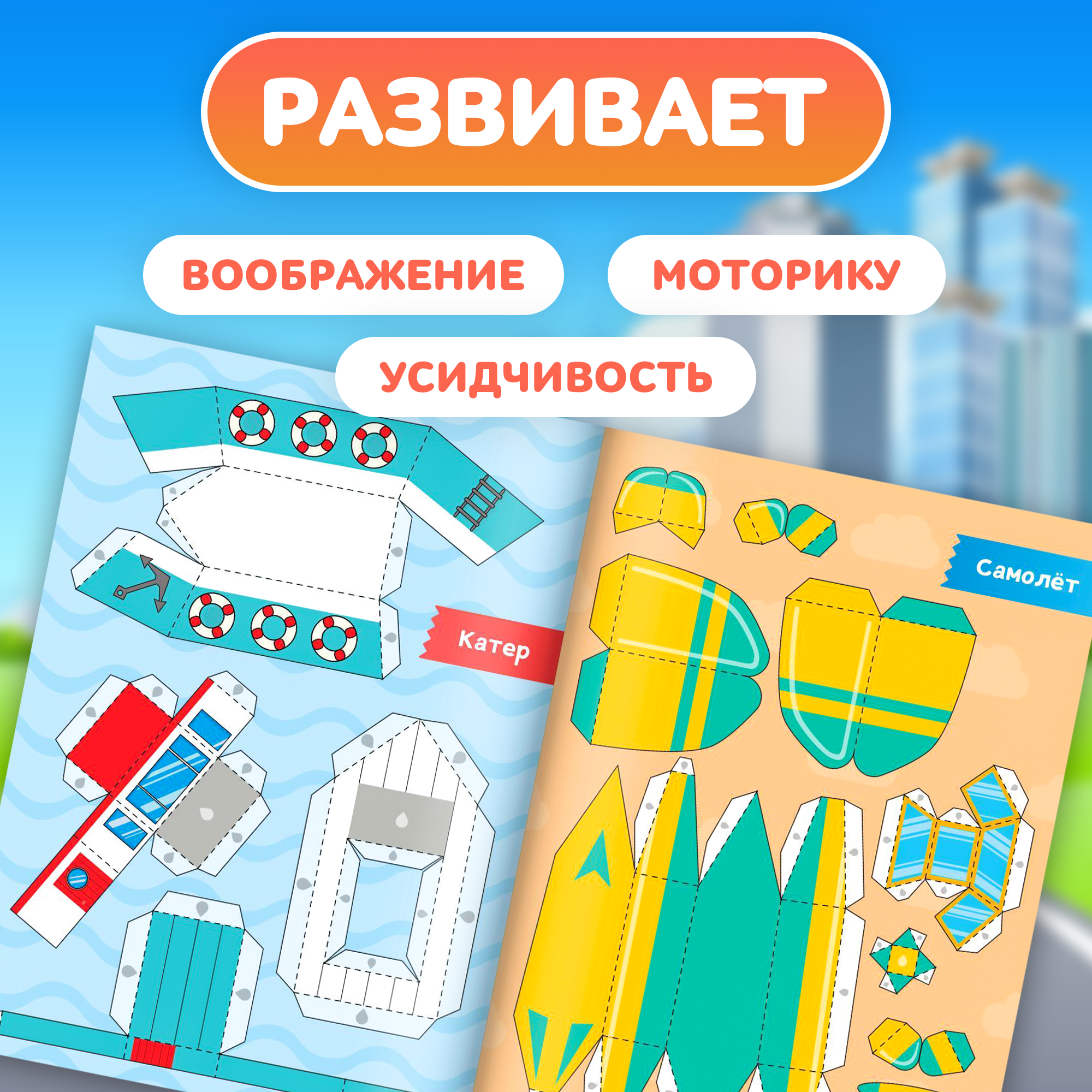 | Дополнительная информация | В каждой книге ребёнок найдёт по 8 бумажных выкроек фигурок. Малышу предстоит вырезать детали и склеить их между собой. |