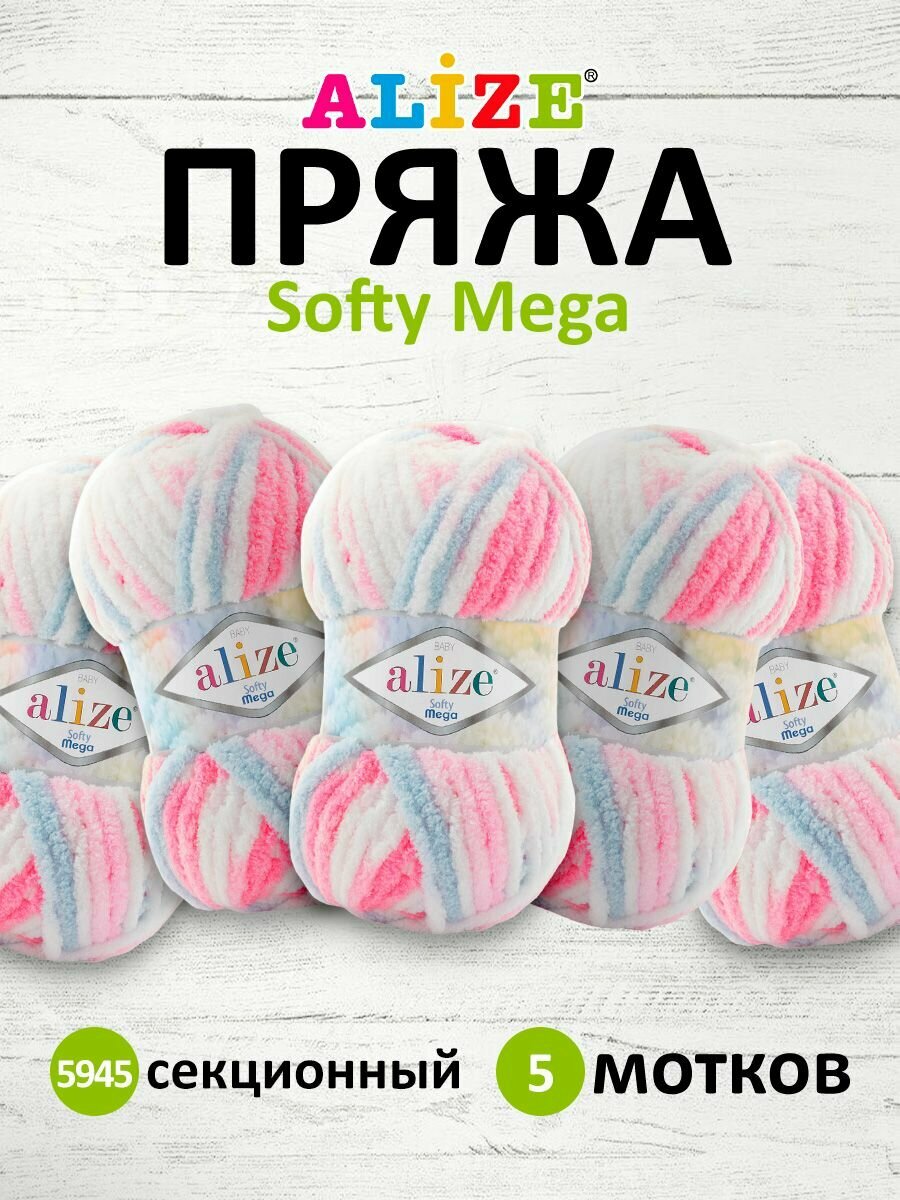 Пряжа Softy mega, Alize, принт - 5945, 100% микрополиэстер, 5 мотков, 100 г, 70 м.