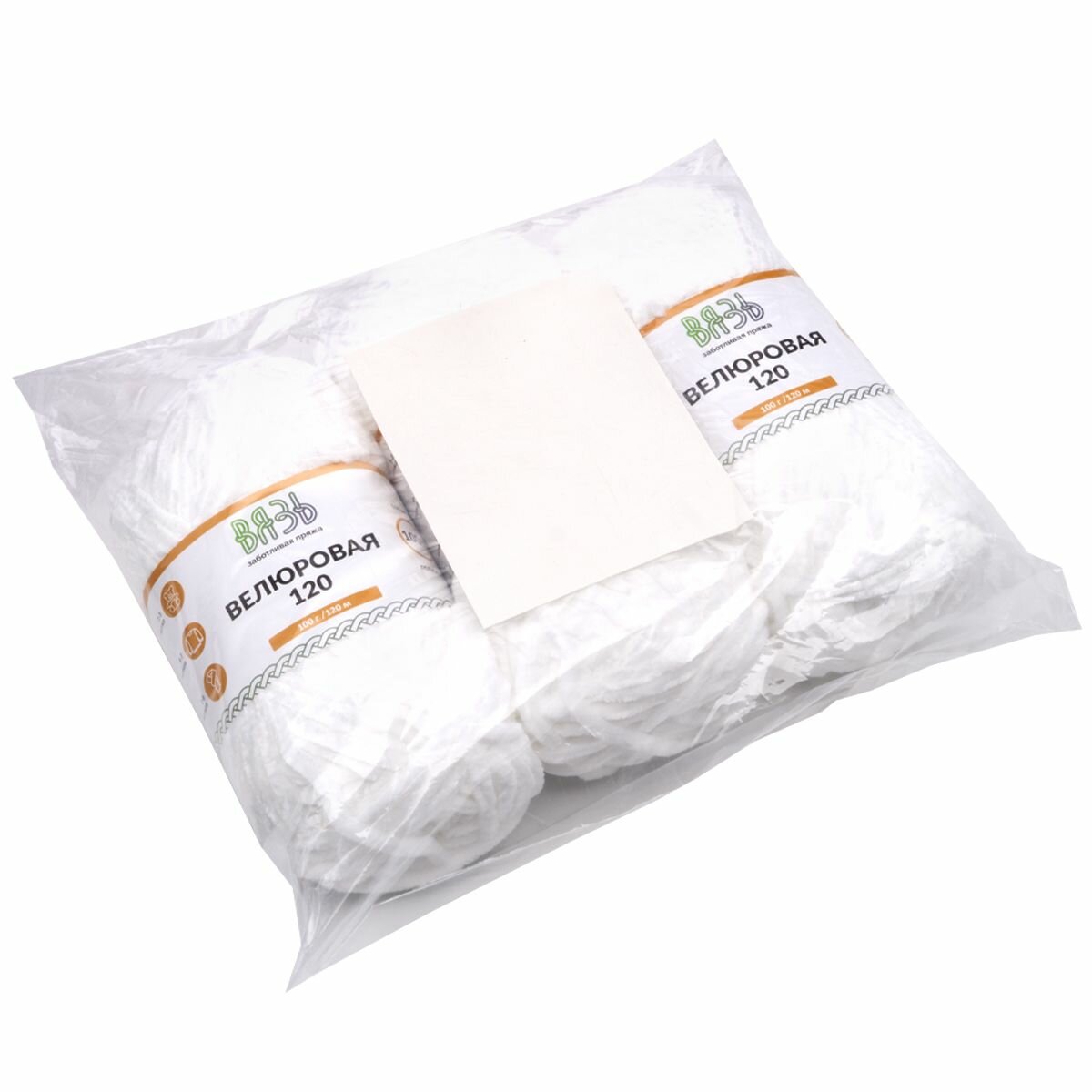 Купить Пряжа для вязания Вязь 'Велюровая 120' 100г, 120м (100% полиэстер) (01 белый), 3 мотка