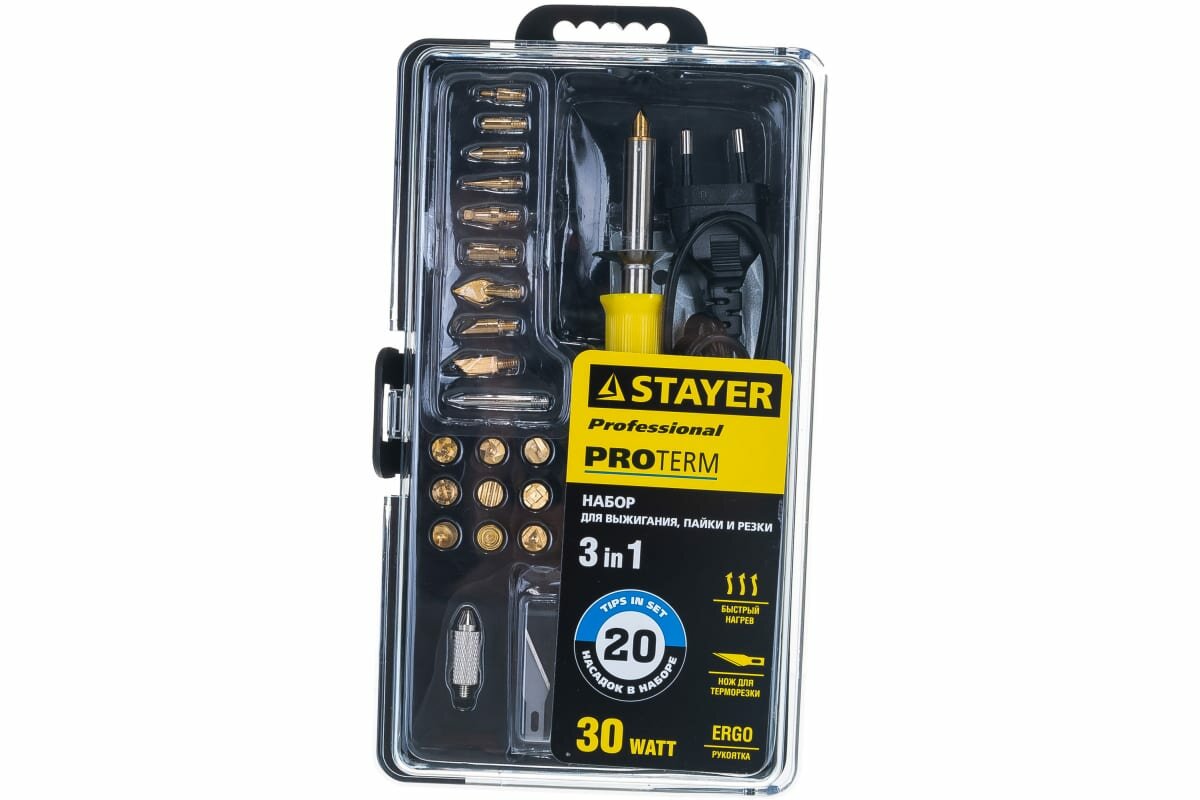 Прибор для выжигания STAYER PROTerm 30 Вт 20 насадок 45227