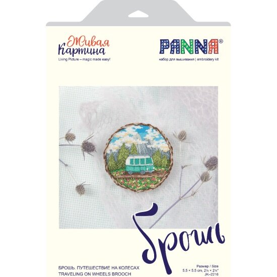 Набор для вышивания PANNA Живая картина JK-2216 Брошь. Путешествие на колесах 5.5 х 5.5 см интересное:
