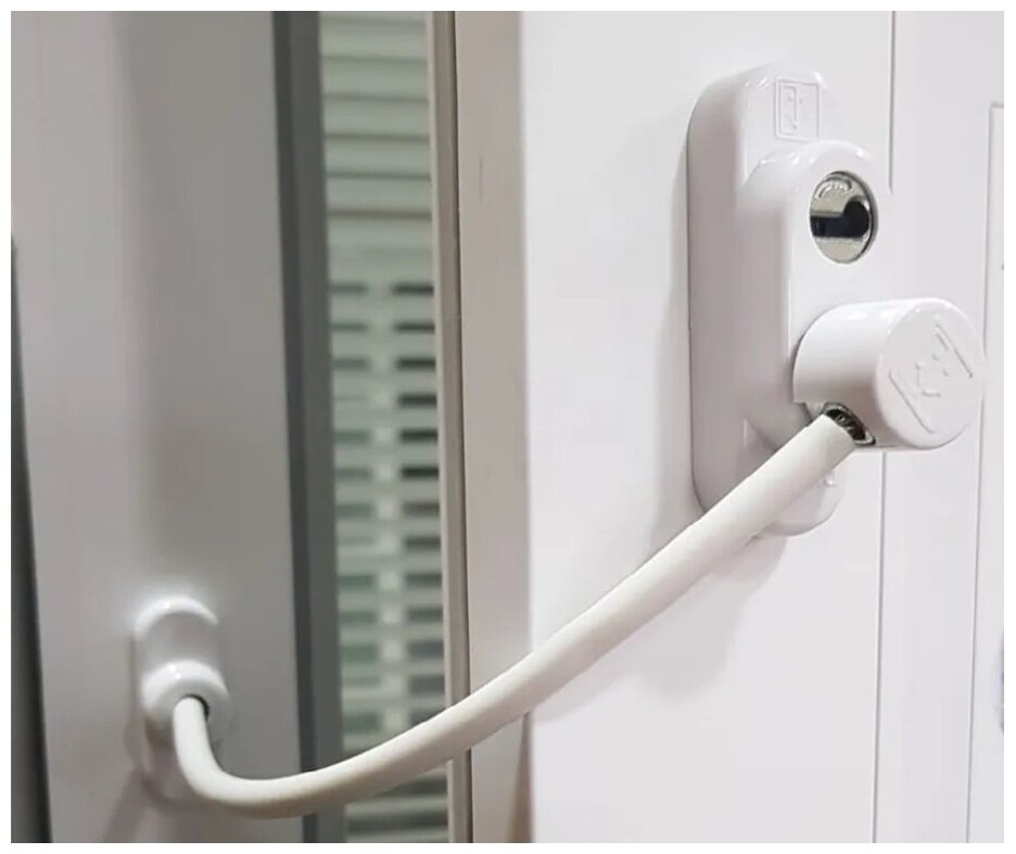 Купить Замок безопасности (блокиратор) с тросиком на окна, детский замок ограничитель, защитные устройства для детей на окно, 1 шт, белый