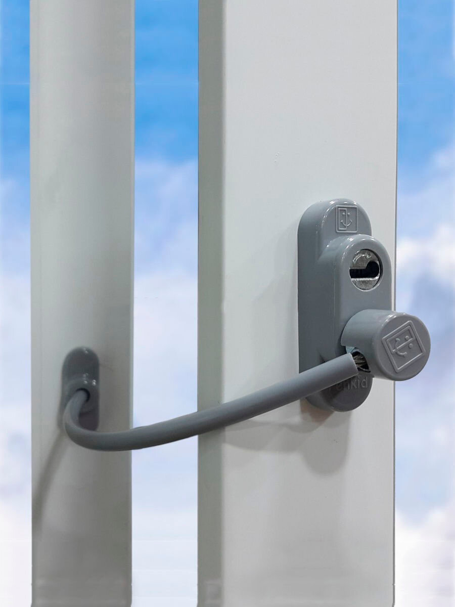 Детский замок Пенкид PenKid - ограничитель окна с тросиком серый