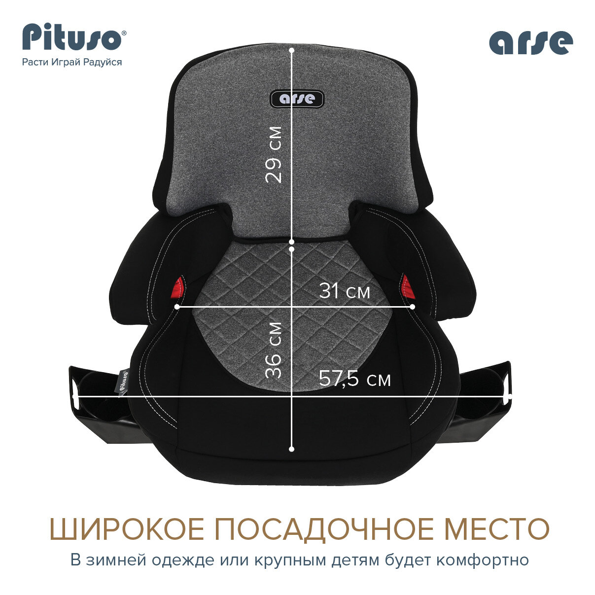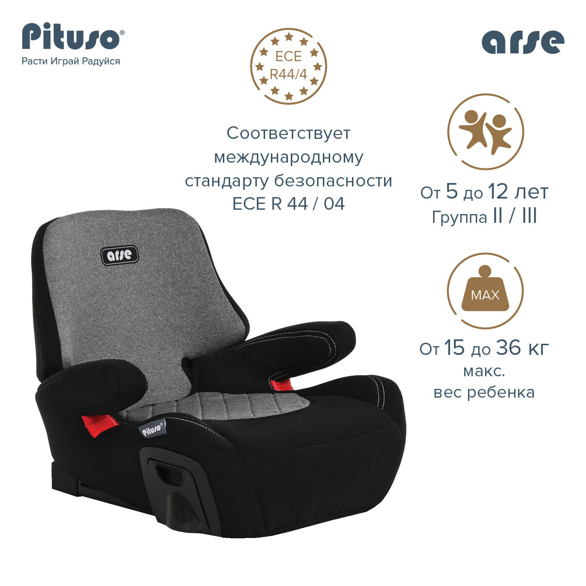 Автокресло Pituso Arse группа 2/3 для детей от 3-х до 12-ти лет, весом от 15 до 36 кг Grey/Серый интересное: