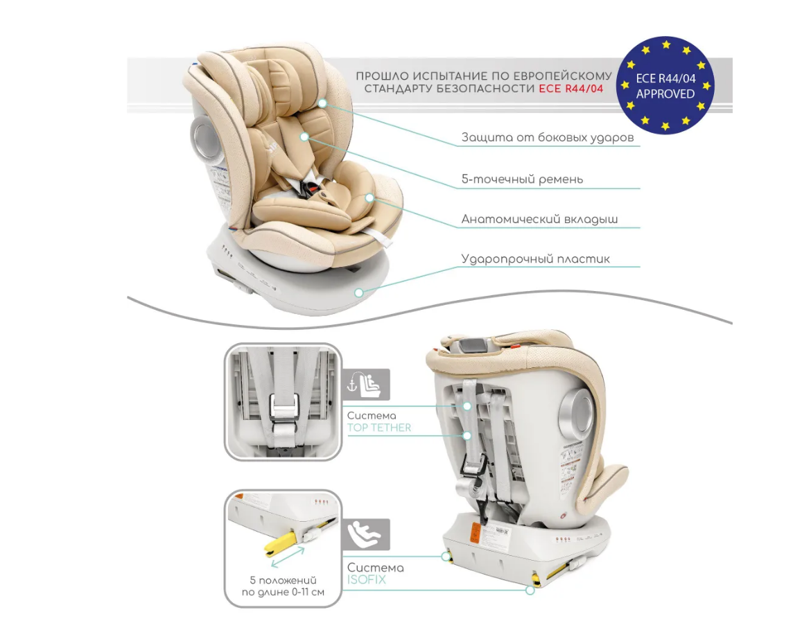 Автокресло детское AmaroBaby Champion Isofix (0-36 кг), Beige интересное: