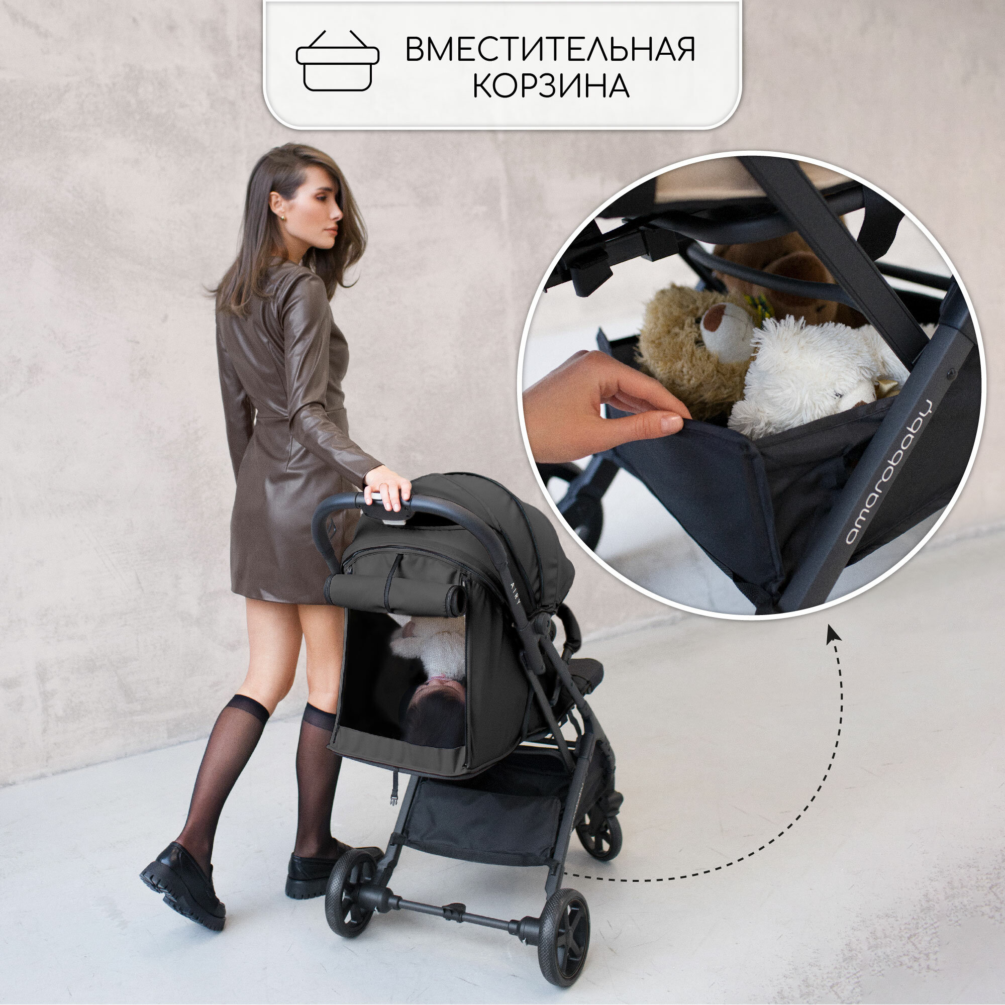 Коляска прогулочная Amarobaby, Airy, чёрный