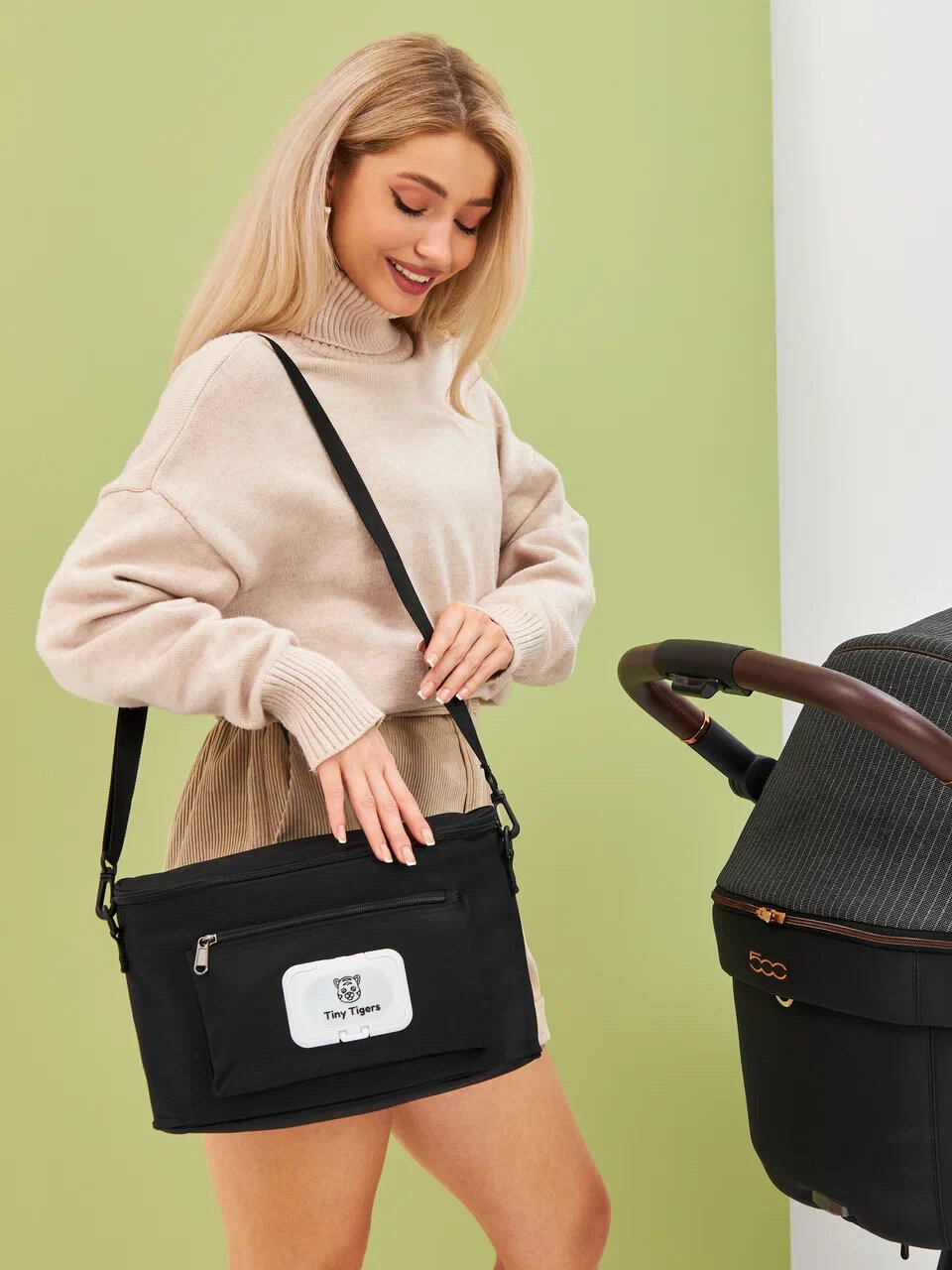 Сумка-органайзер Tiny Tigers для детской коляски и мамы, черная, водонепроницаемая интересное: